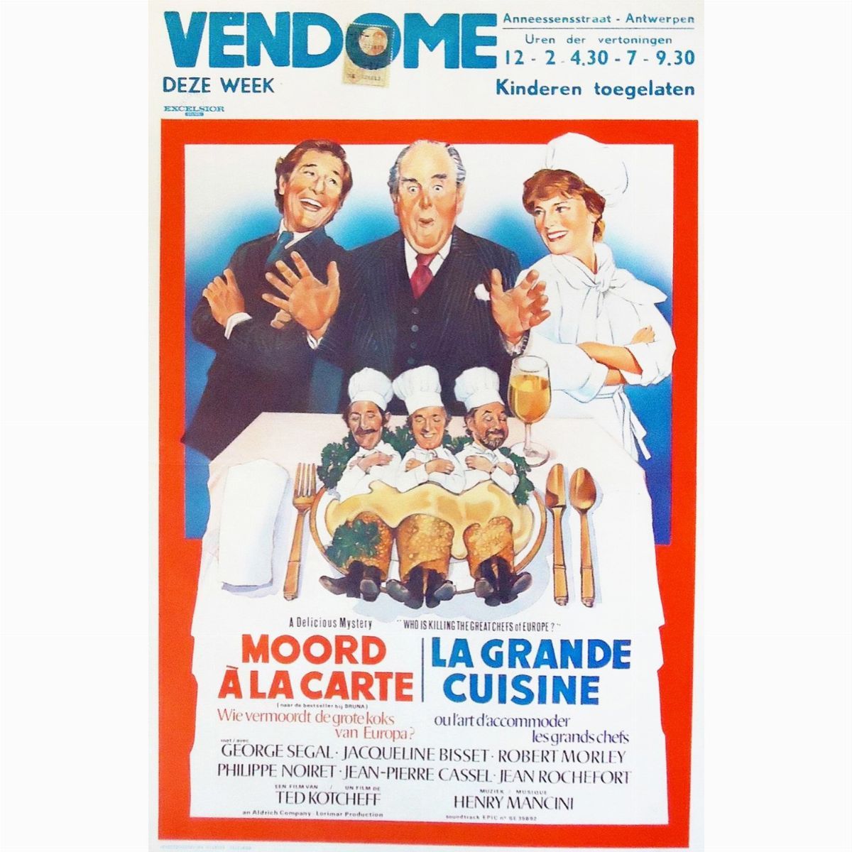 Bozzetto originale per la versione belga della locandina ufficiale del film "Qualcuno sta uccidendo i più grandi cuochi d'Europa", diretto da Ted Kotcheff con George Segal, Jacqueline Bisset e Philippe Noiret nel 1978.