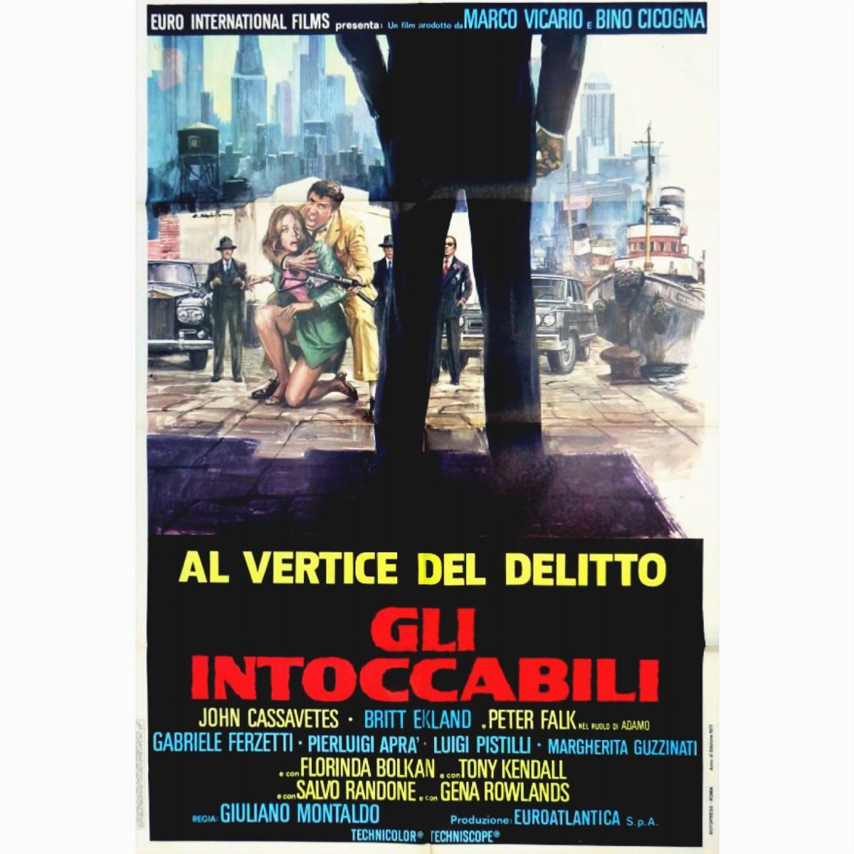 Bozzetto originale realizzato da Ciriello per la locandina ufficiale del film "Gli intoccabili", diretto da Giuliano Montaldo con John Cassavetes, Britt Ekland e Peter Falk nel 1969. Firmato.
