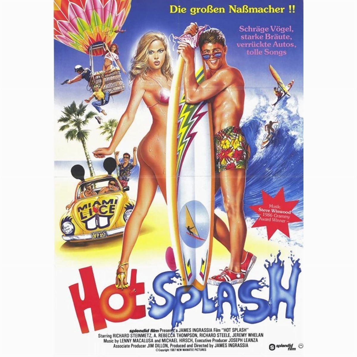 Bozzetto originale realizzato da Casaro, all’interno del suo studio di Monaco di Baviera, per la locandina ufficiale del film "Hot Splash", diretto da James Ingrassia con Richard Steinmetz, Andrea Thompson e Jeremy Whelan nel 1988. Firmato al fronte e al retro.