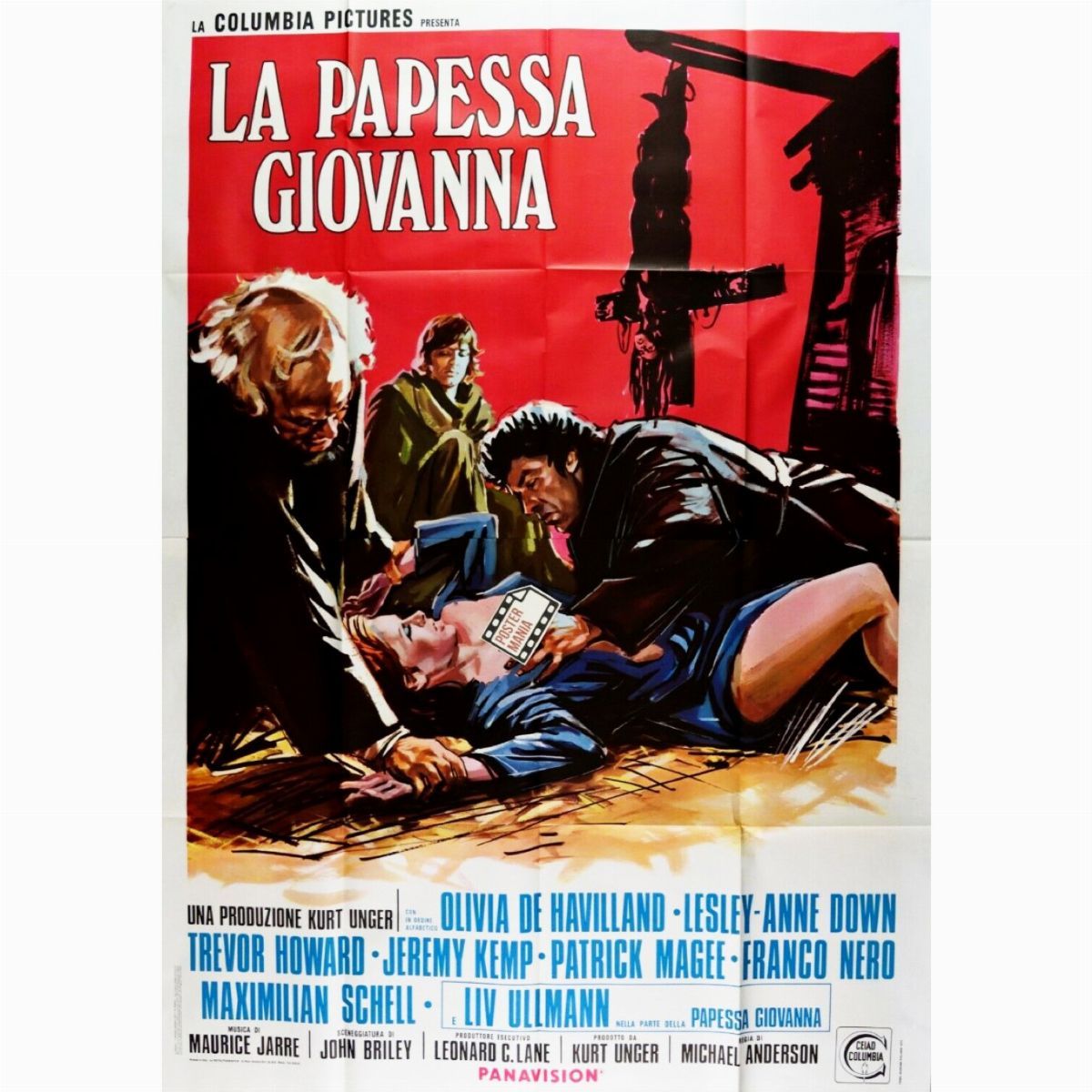 Bozzetto originale realizzato da Brini per la locandina ufficiale del film "La papessa Giovanna", diretto da Michael Anderson con Olivia De Havilland, Maximilian Schell e Franco Nero nel 1972.