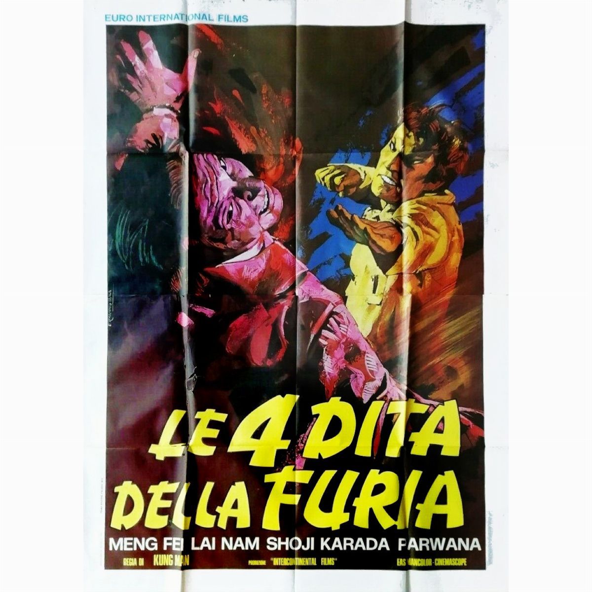 Bozzetto originale realizzato da Iaia per la locandina ufficiale del film "Le 4 dita della furia", diretto da Kung Man nel 1971. Firmato.
