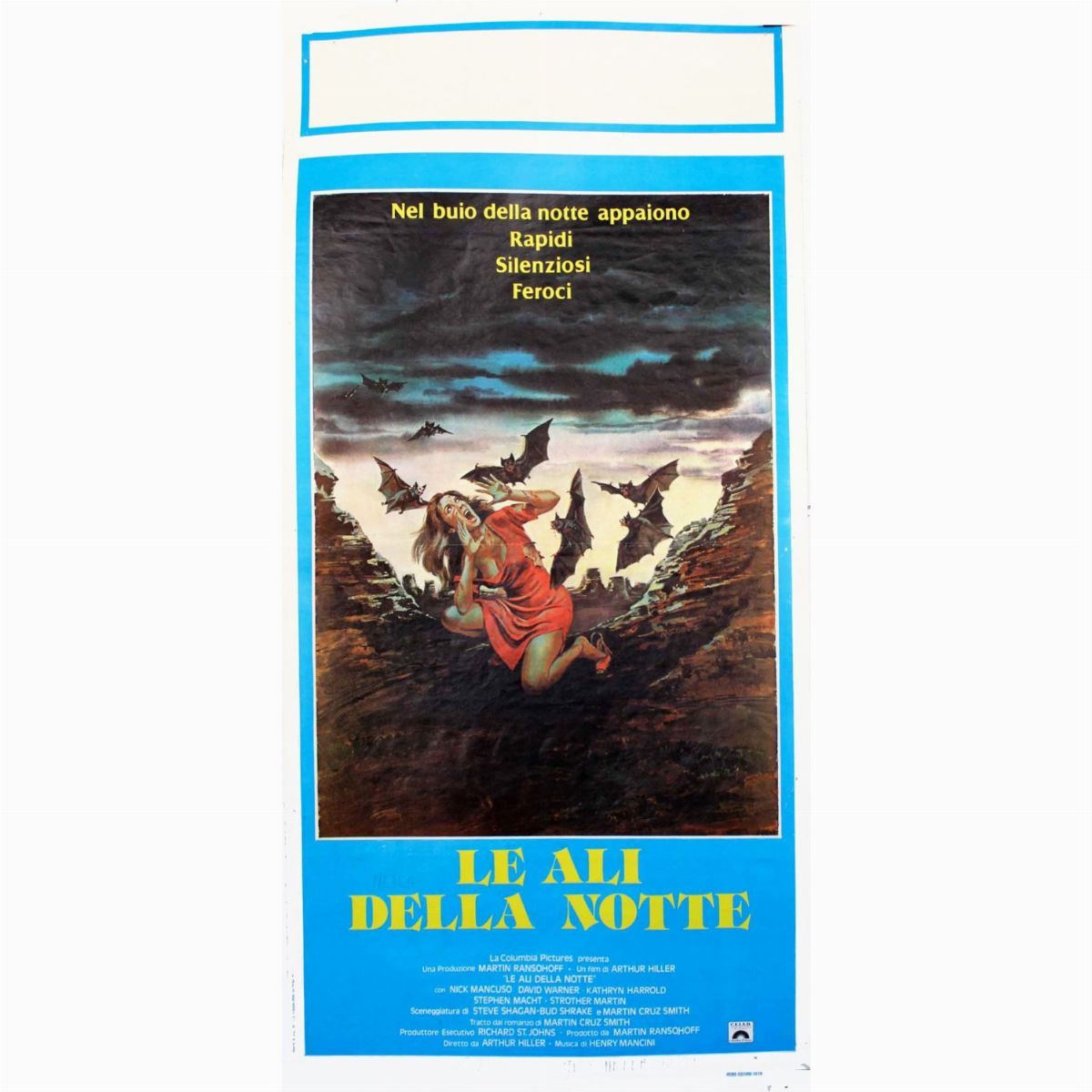Bozzetto originale realizzato da Graves per la locandina ufficiale del film "Le ali della notte", diretto da Arthur Hiller con Nick Mancuso, David Warner e Kathryn Harrold nel 1979. Firmato.