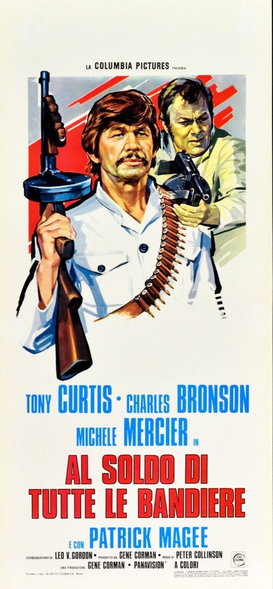 Bozzetto originale realizzato per la locandina ufficiale del film "Al soldo di tutte le bandiere", diretto da Peter Collinson con Charles Bronson e Tony Curtis nel 1970. Fori ai margini.