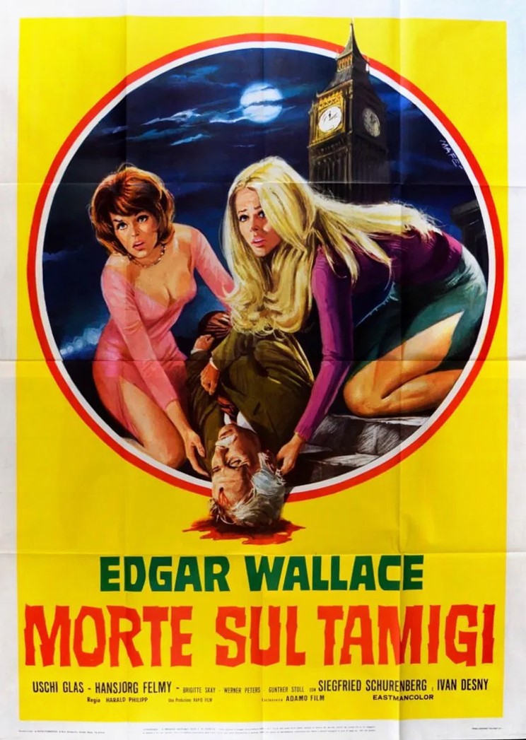 Bozzetto originale realizzato da Mafè per la locandina ufficiale del film "Morte sul Tamigi", diretto da Harald Philipp con Uschi Glas e Werner Peters nel 1971. Firmato.