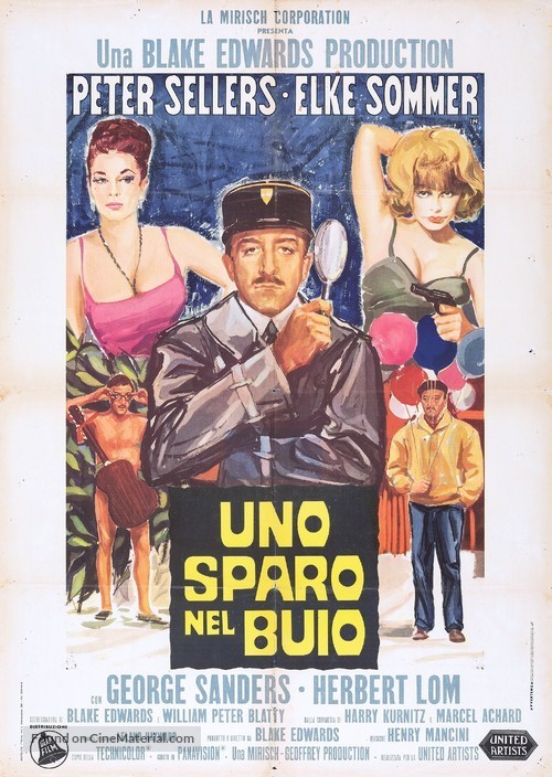 Bozzetto originale realizzato da Avelli per la locandina ufficiale del film "Uno sparo nel buio", diretto da Blake Edwards con Peter Sellers e Elke Sommer nel 1964. Il secondo capitolo della celebre saga della Pantera Rosa. Fori di affissione ai margini, piccole mancanze agli angoli e lievi pieghe.