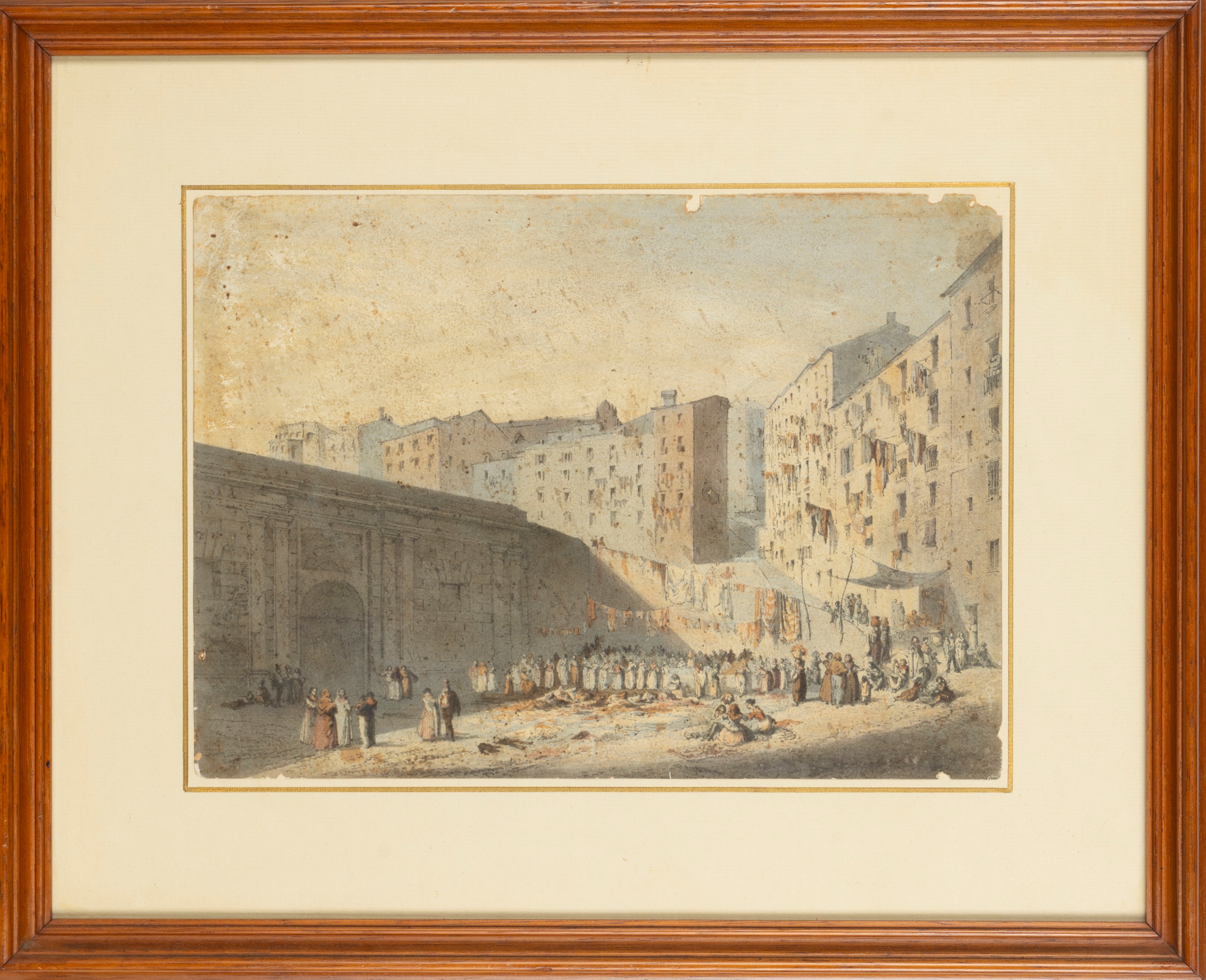 Serie di 5 stampe acquerellate raffiguranti il porto e la lanterna, alcuni palazzi storici e scene di vita.