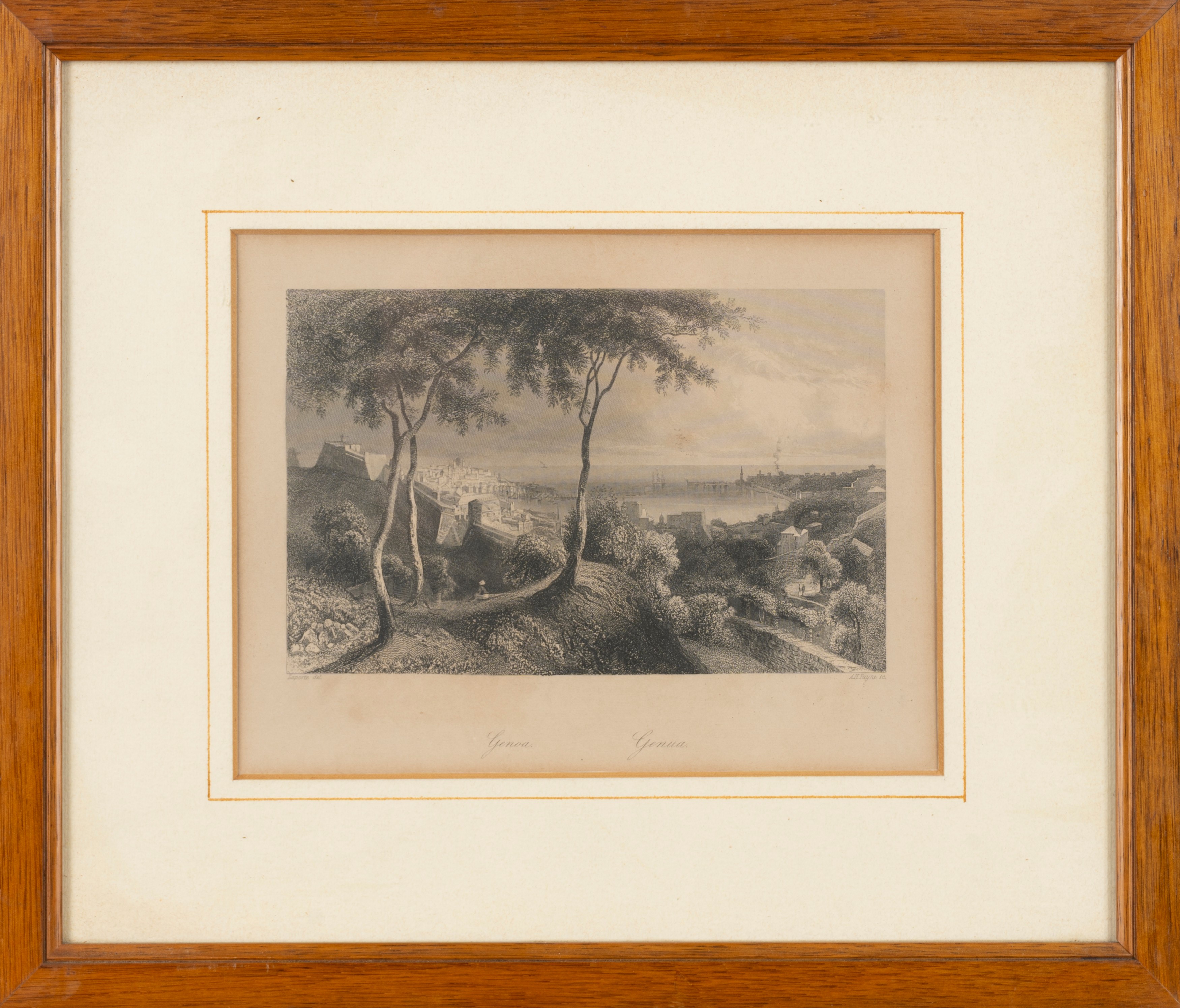 Lotto composto da una bella veduta di Genova dalle colline, da una rappresentazione del borgo di Cocoleto, del fiume Magra vicino Sarzana e dalla costa presa da Levante.