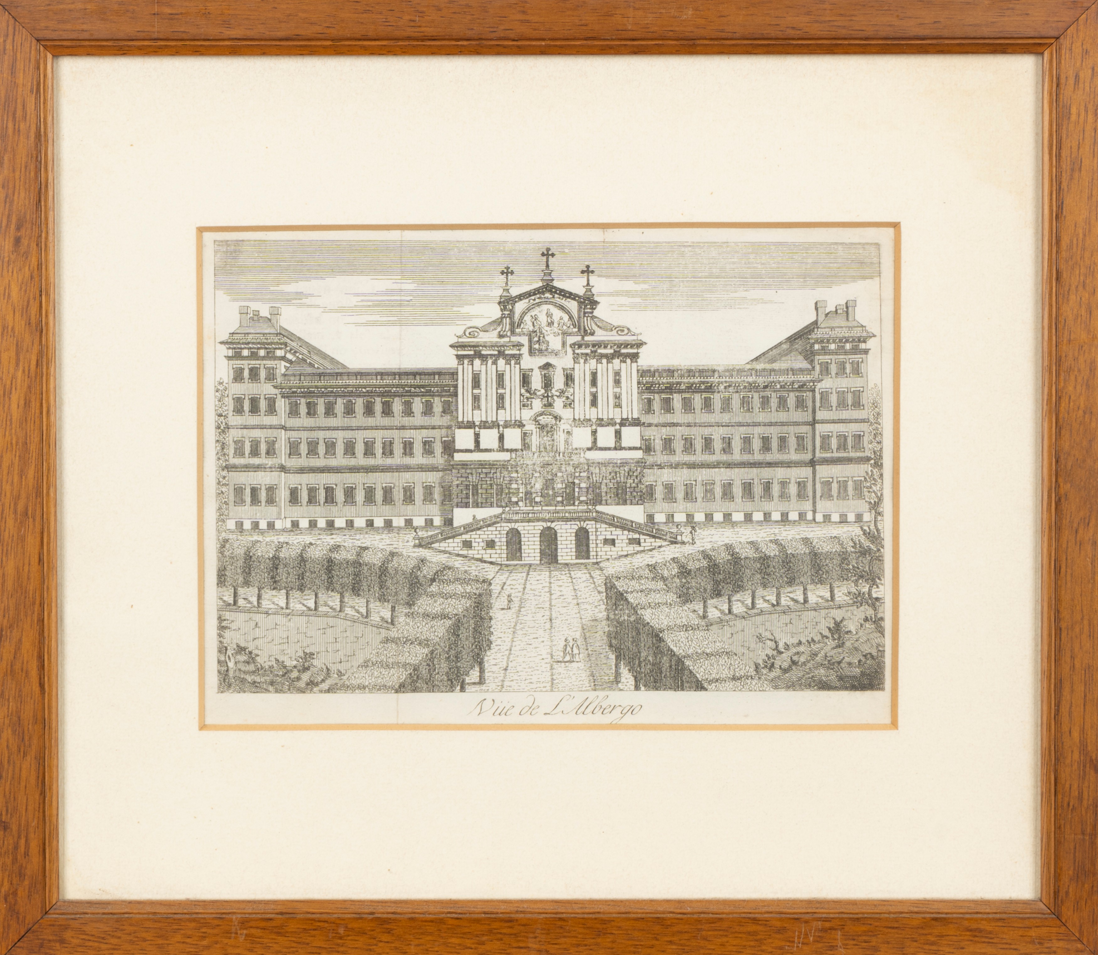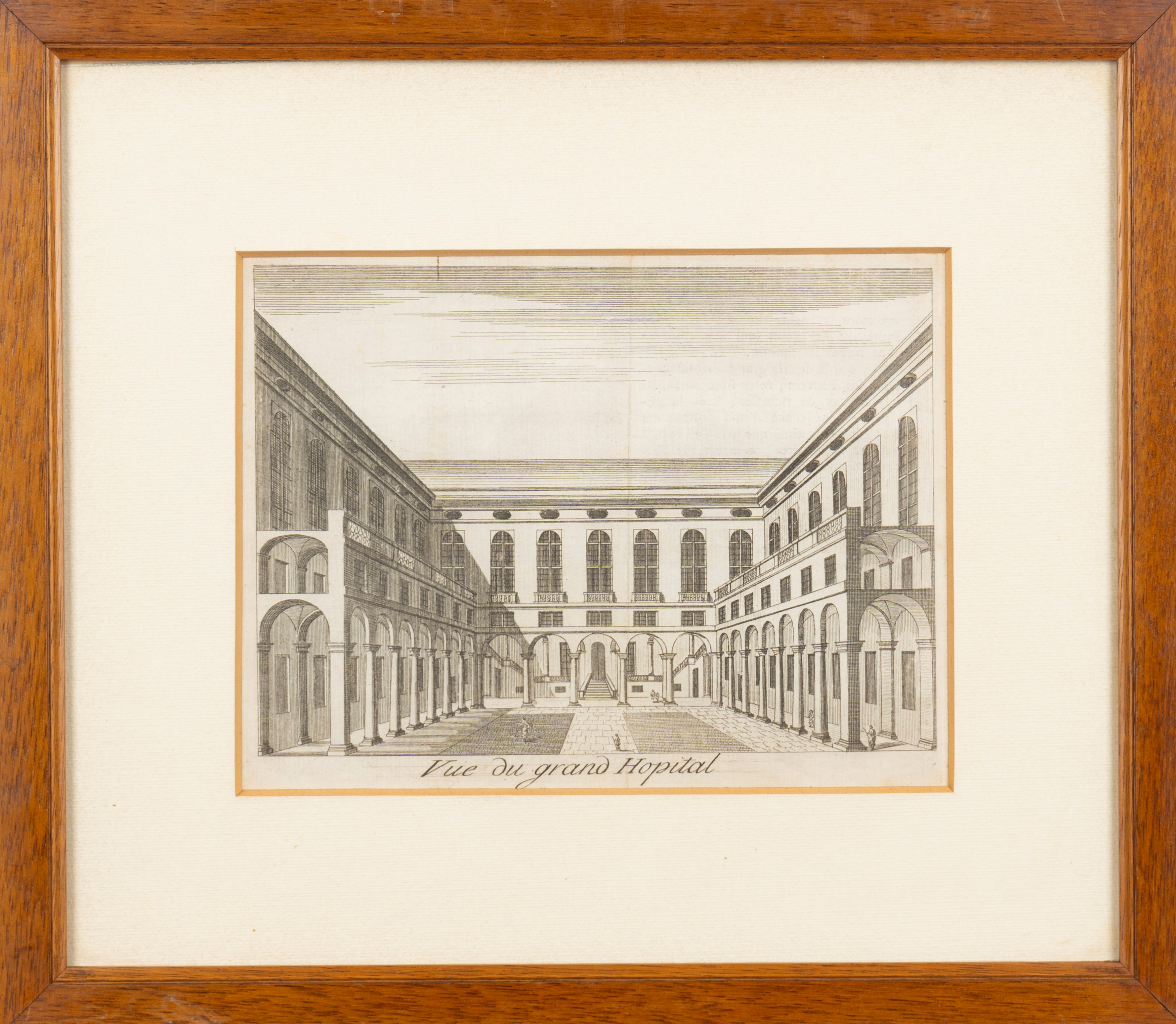 Bella veduta dell'albergo dei Poveri all'acquatinta; insieme nel lotto seguono Vue de l'Albergo e La Vue du Grand Hopital.