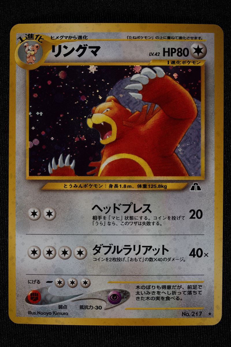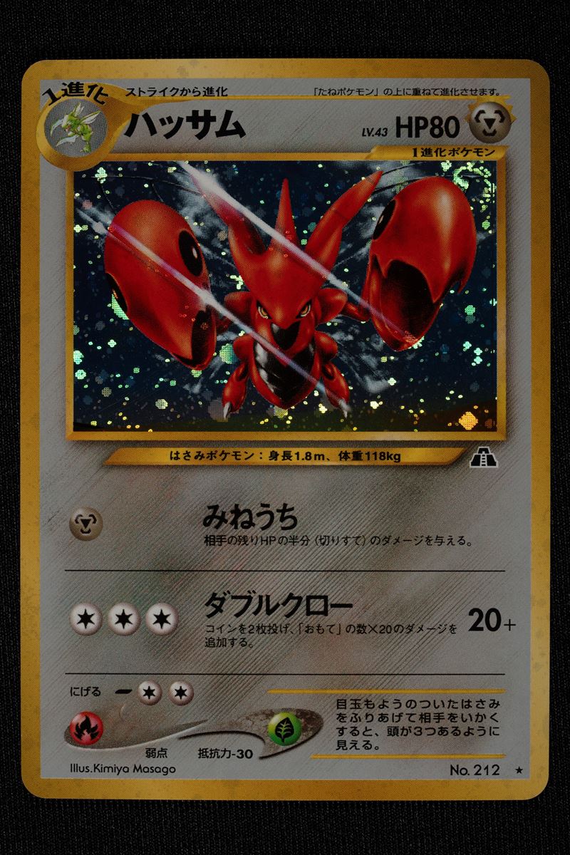 Questa coppia di olografiche di Neo Discovery (N2) in lingua giapponese celebra due dei Pokémon più rappresentativi di Johto: Scizor e Ursaring. Entrambe le carte sono autentiche icone del GCC, capaci di unire l'estetica metallica e futuristica di Scizor alla forza primordiale di Ursaring, il tutto esaltato dalla superiore brillantezza olografica e dalla qualità del cartoncino tipica delle prime stampe nipponiche. Oltre al valore estetico, queste carte sono storicamente rilevanti per aver definito il meta dell'epoca, rendendole oggi pezzi estremamente ricercati sia per il loro significato nostalgico che per la loro rarità sul mercato internazionale.