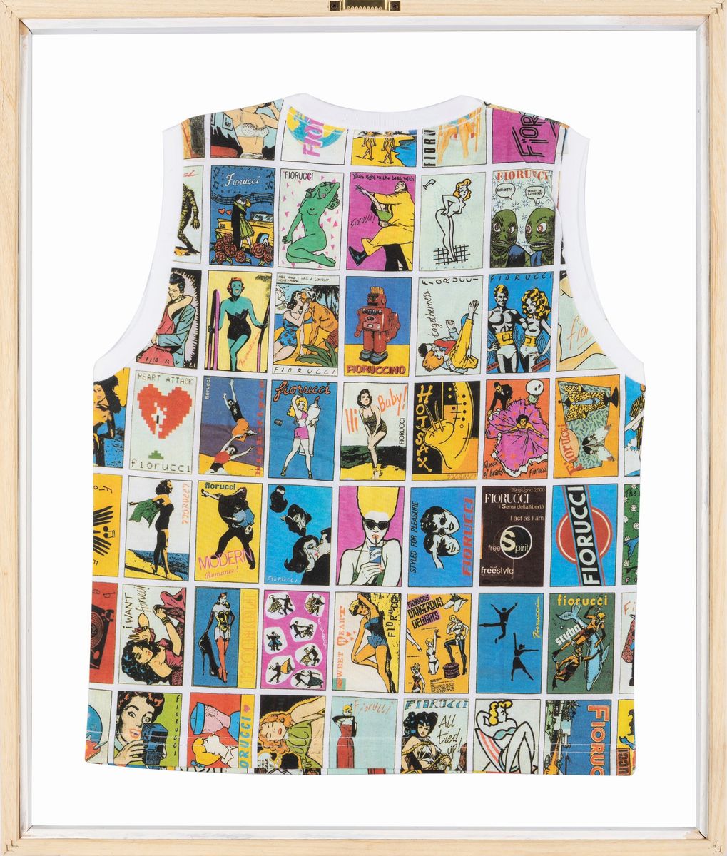 Etichetta Fiorucci T-Art, taglia M, inclusa cornice.