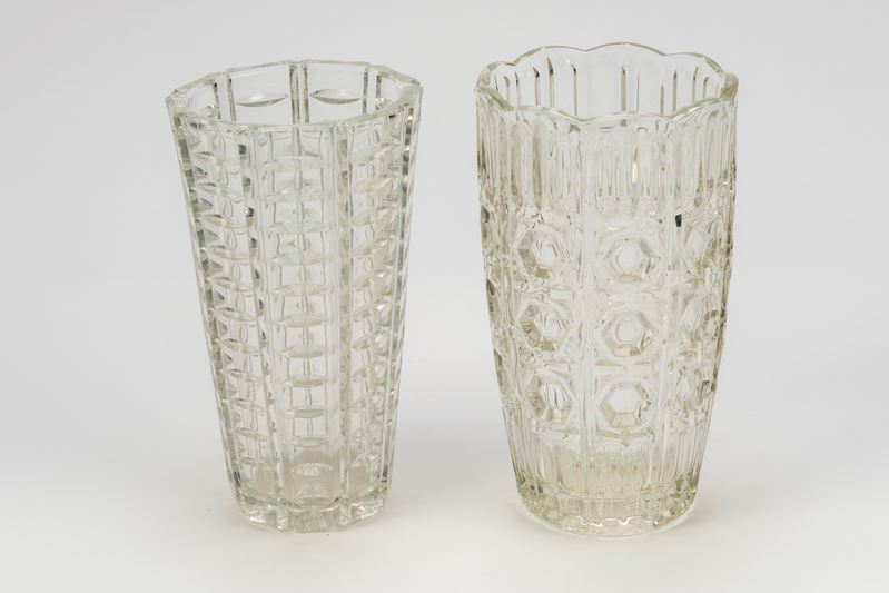 Sei flute con decoro a medaglione a rilievo e volute in argento