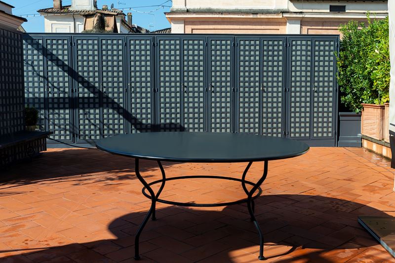 Tavolo con piano rettangolare in ferro battuto da giardino o da interno