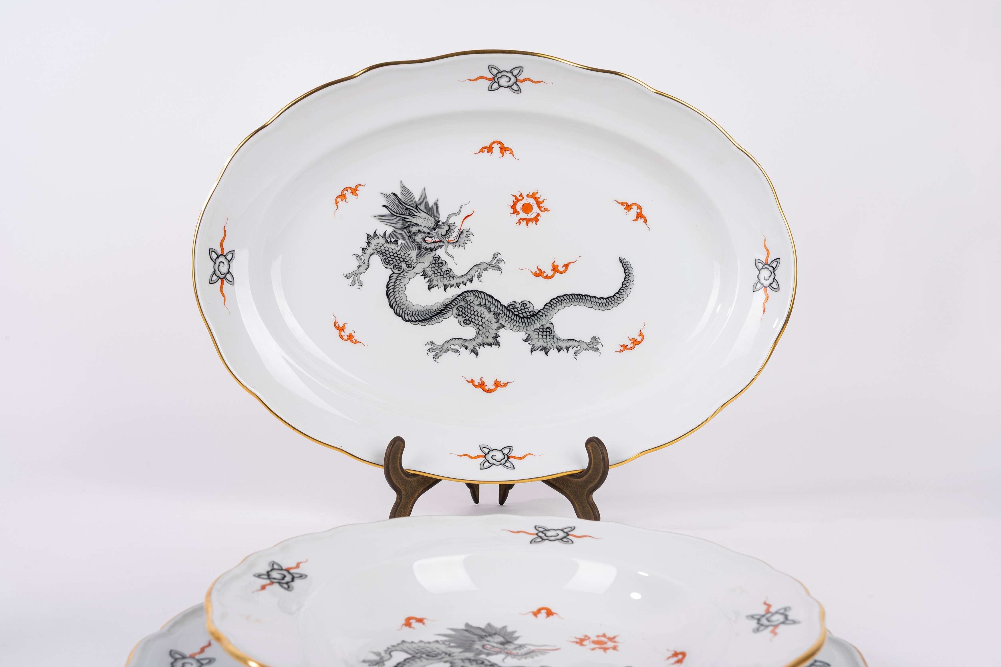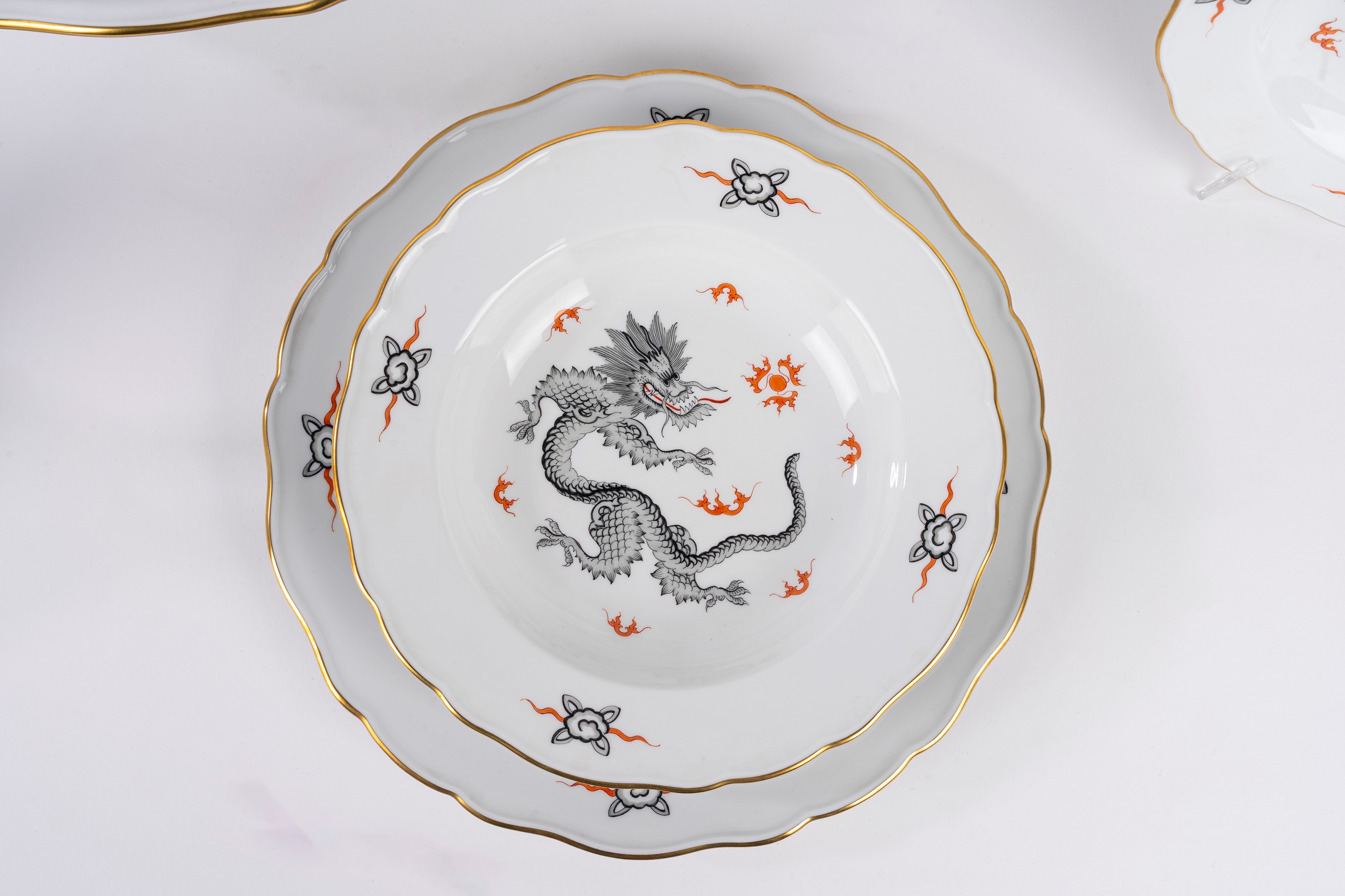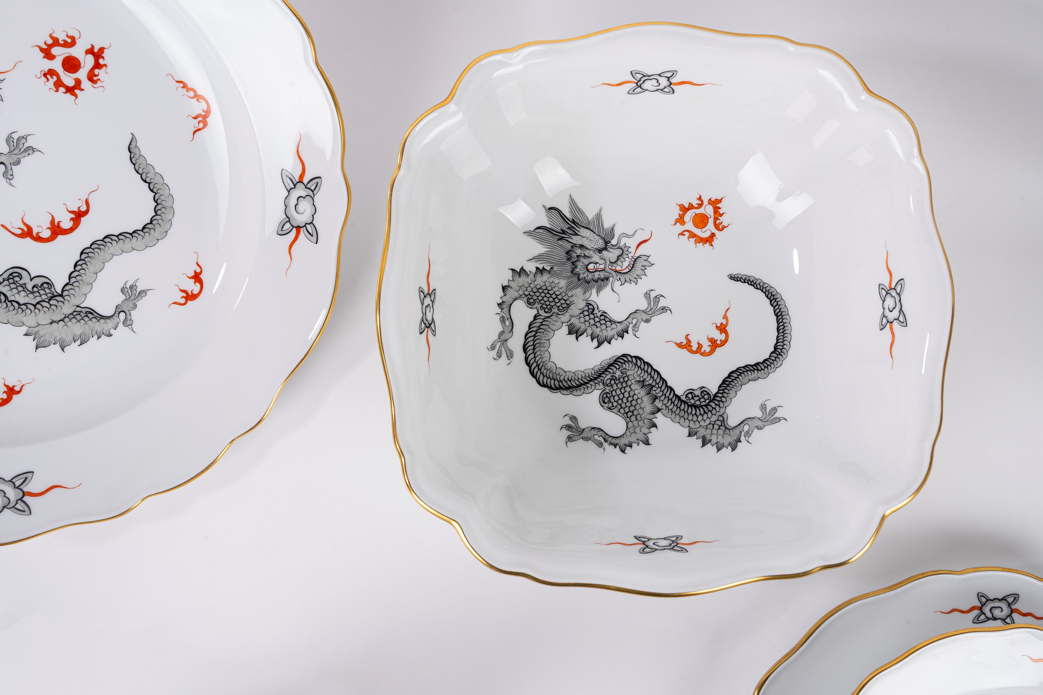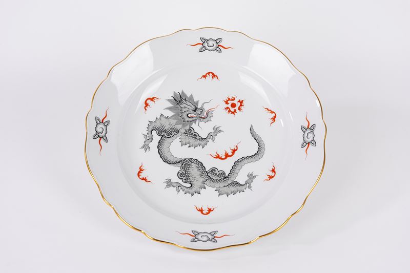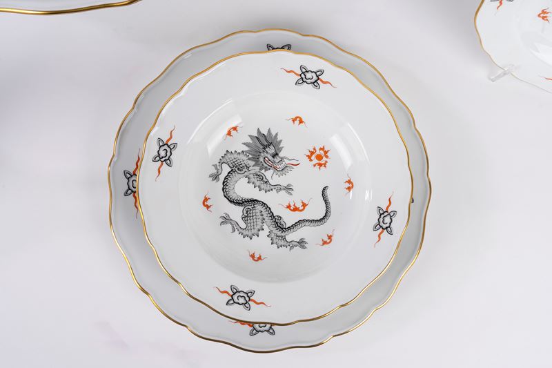 Importante servizio da dodici in porcellana "Ming Black Dragon", Meissen