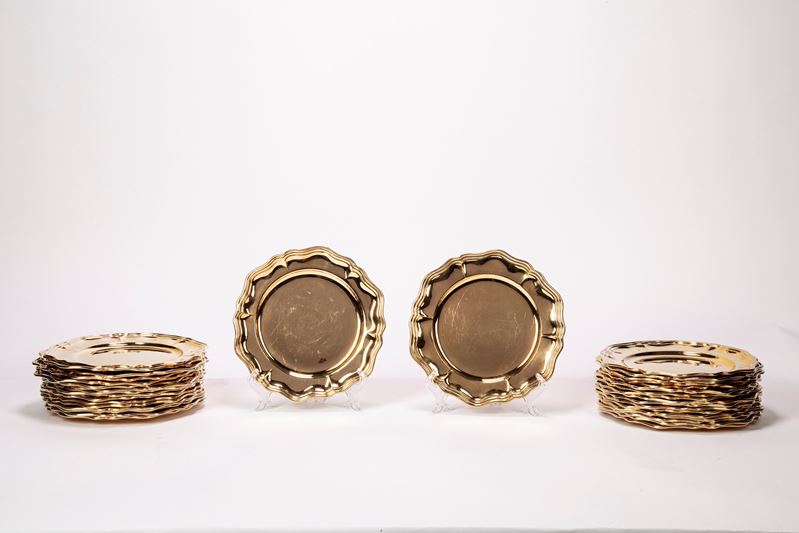 Manifattura Darte Freres, Parigi 1820 circa. Gruppo di trentaquattro piatti in porcellana bianca...