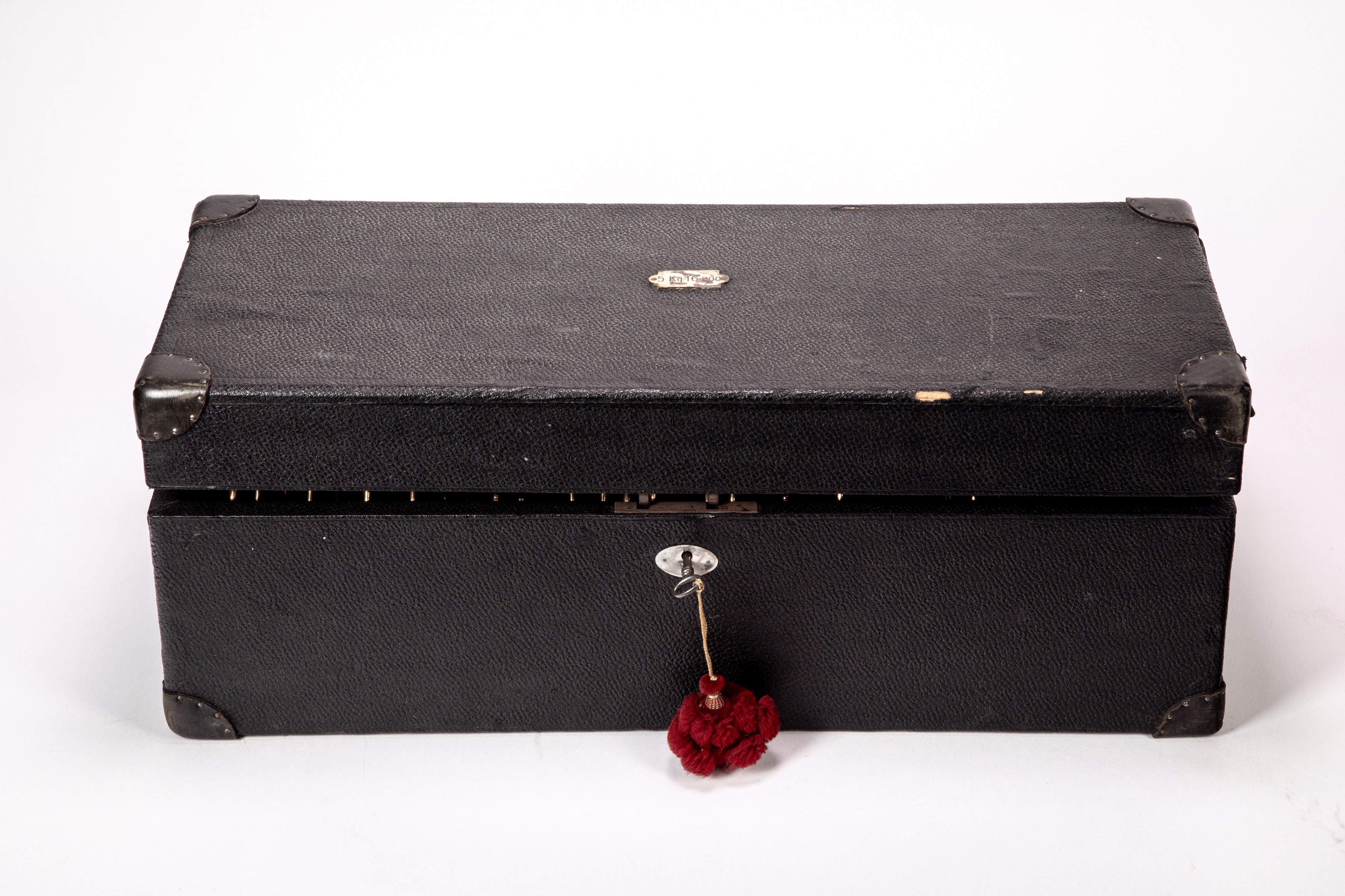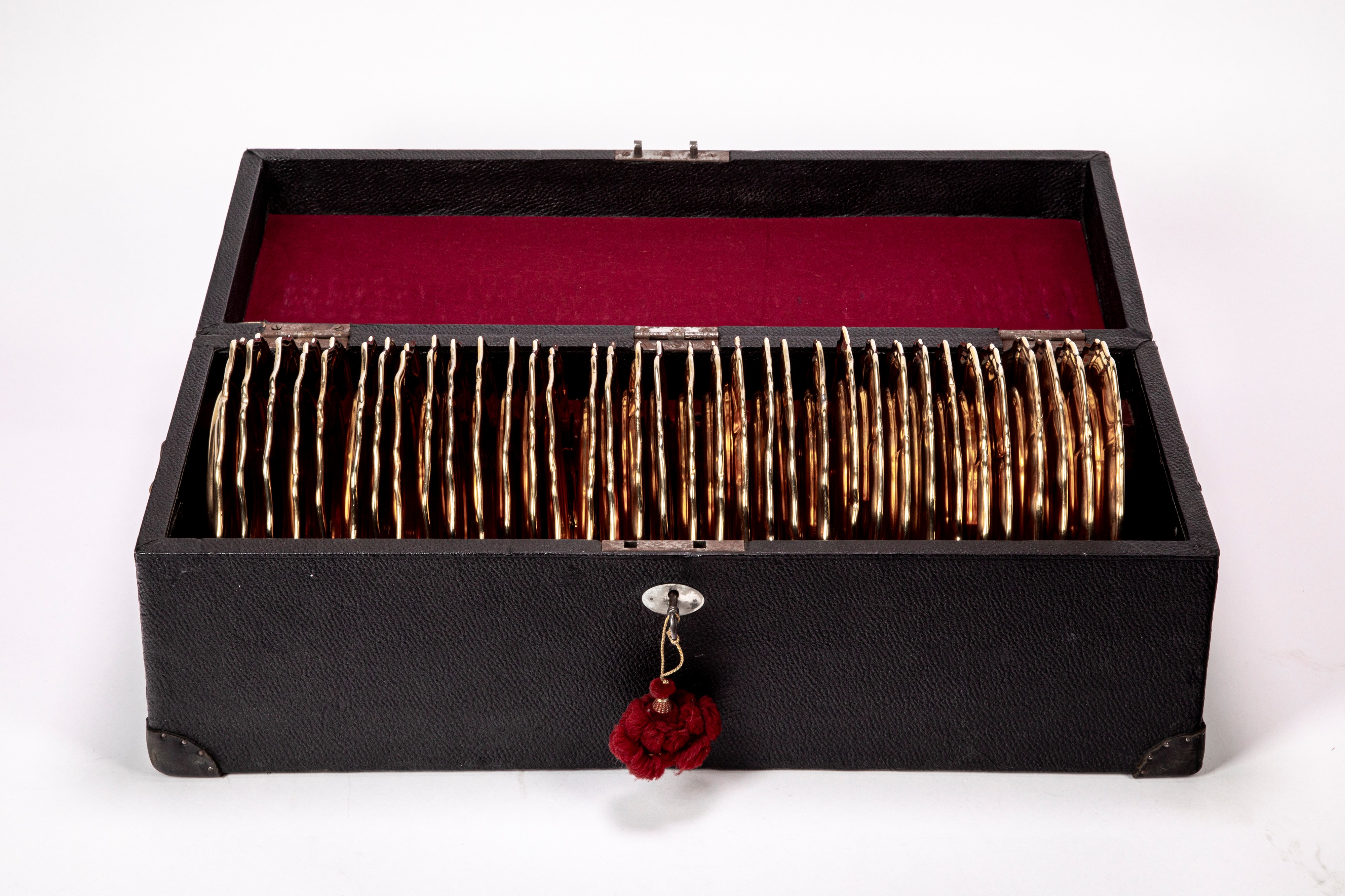 di forma circolare di bordatura sagomata scanalata, entro scatola originale rivestita in marocchino con divisori interni.