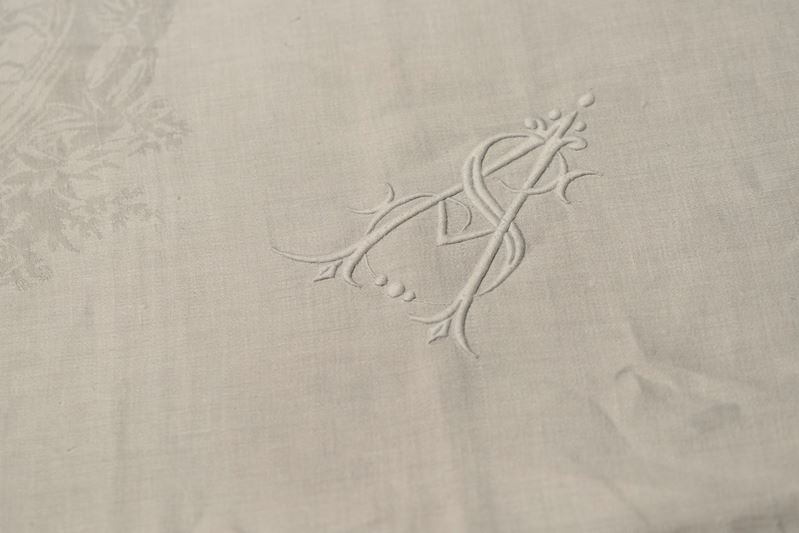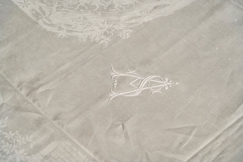 Accompagnata da 24 tovaglioli con monogramma AS ricamato.