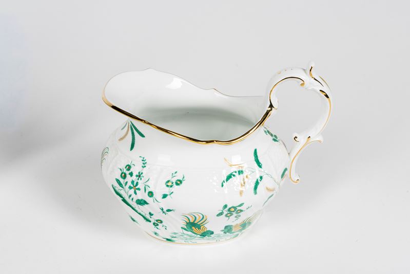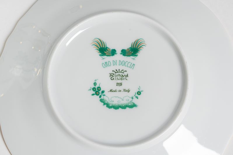 Composto da sei tazze con piatto, teiera, zuccheriera e lattiera. Alla base "Oro di Doccia Rchard Ginori 1735"