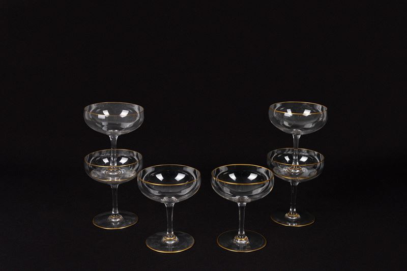 Set di dodici coppe da champagne in vetro con profilo in platino