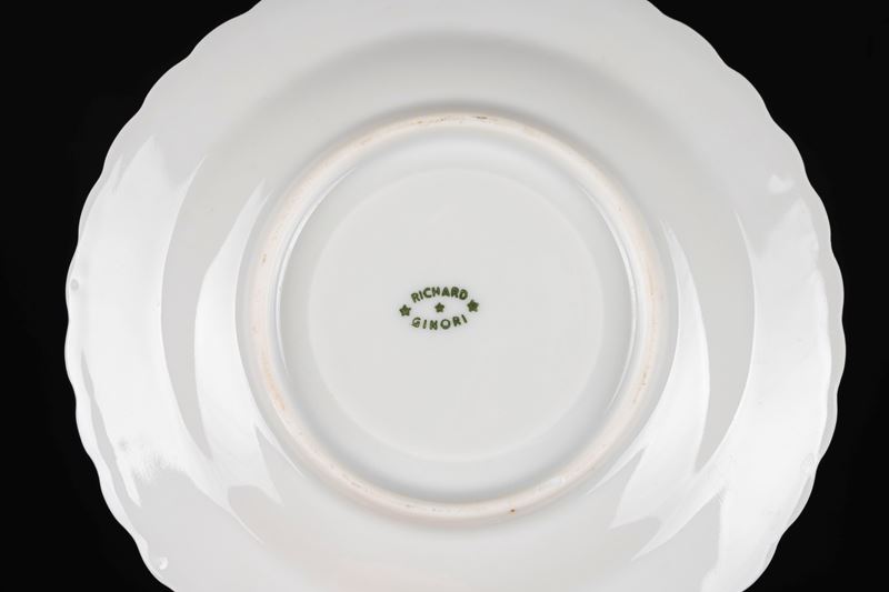 Servizio da caffè da sei in porcellana bianca con fiorellini in oro, Richard Ginori, inizi secolo XX