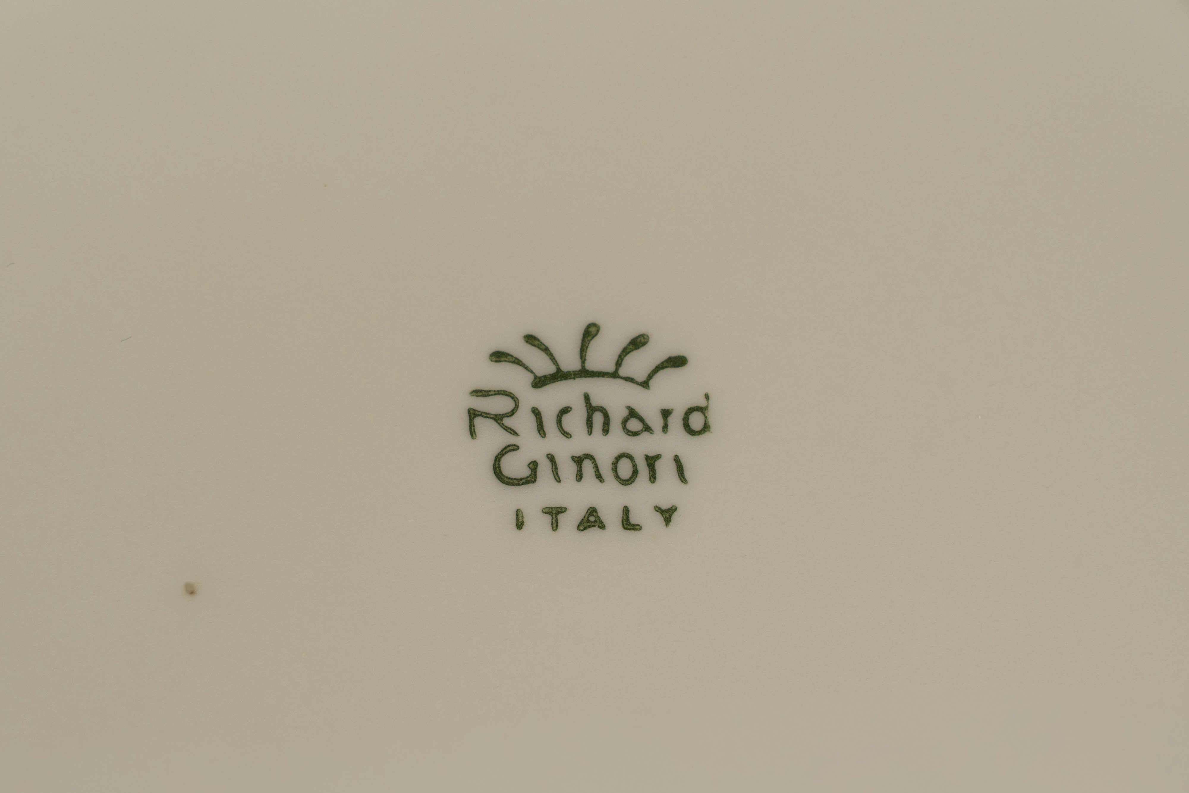 Servizio da dodici in porcellana avorio con bordo decorato a fiori e profili mossi e dorati. Richard Ginori, secolo XX