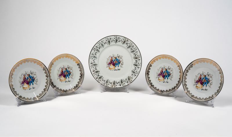 composto da un piatto Furstenberg con decoro floreale differente e quattro piattini con marchio H&C selb bavaria germany Heissrich.