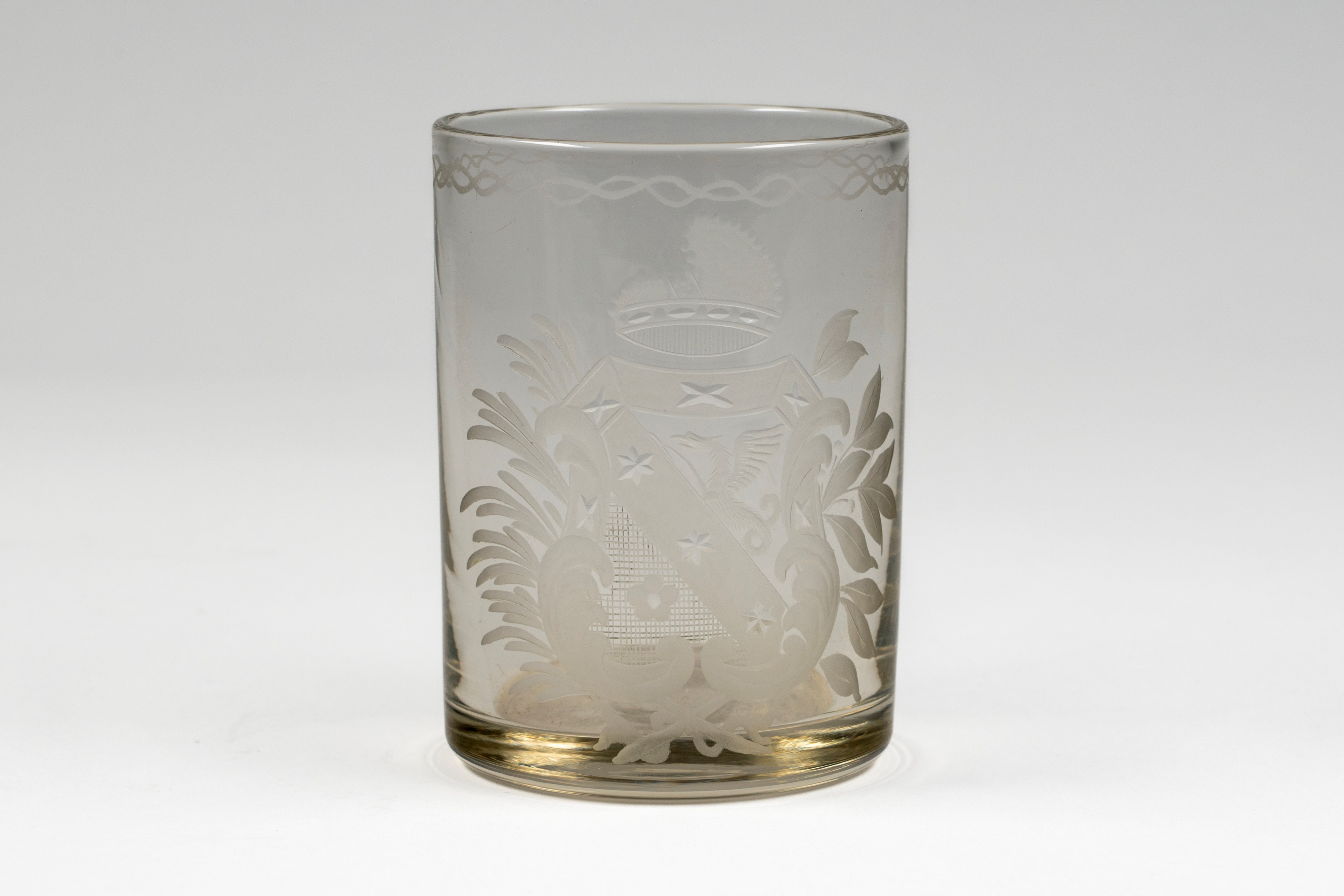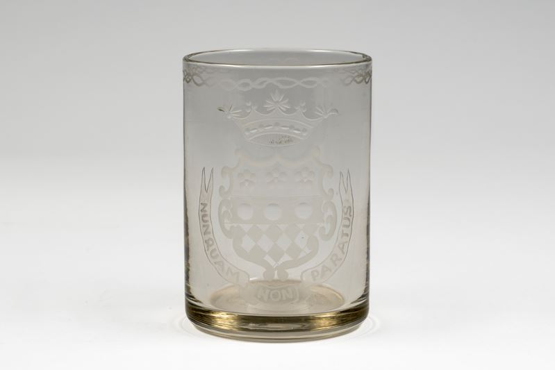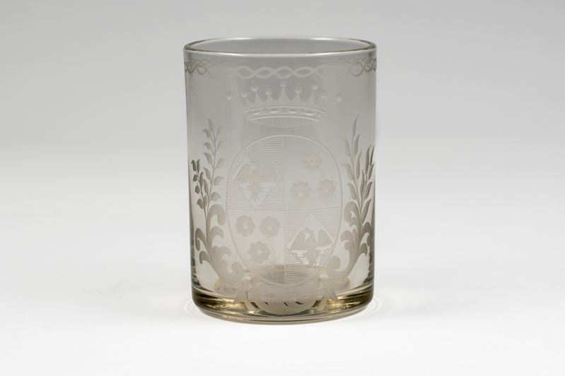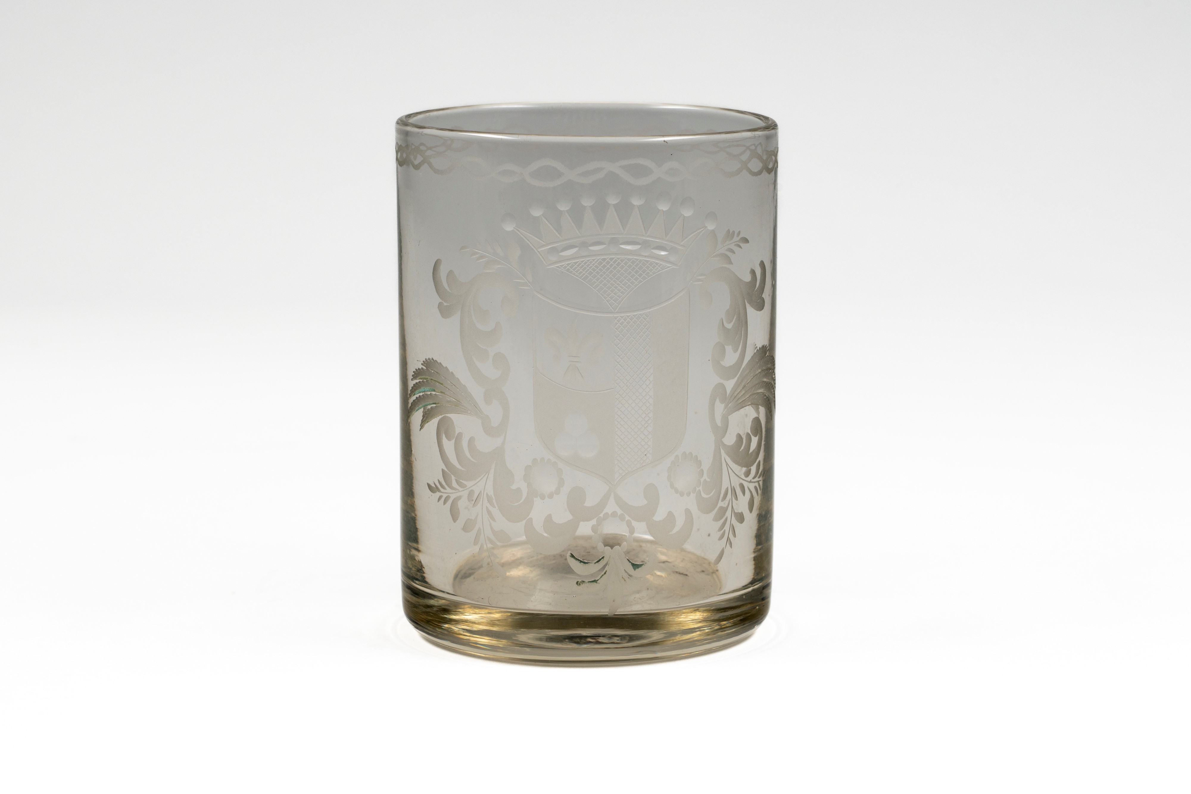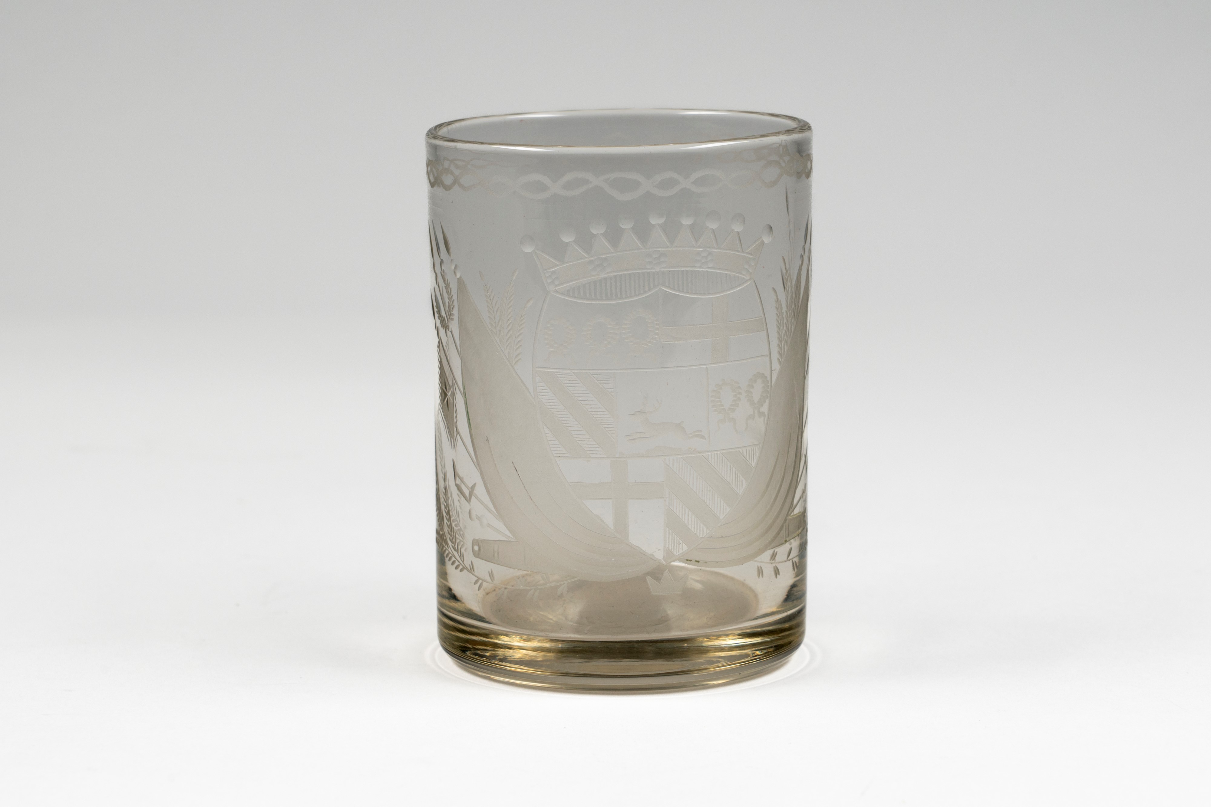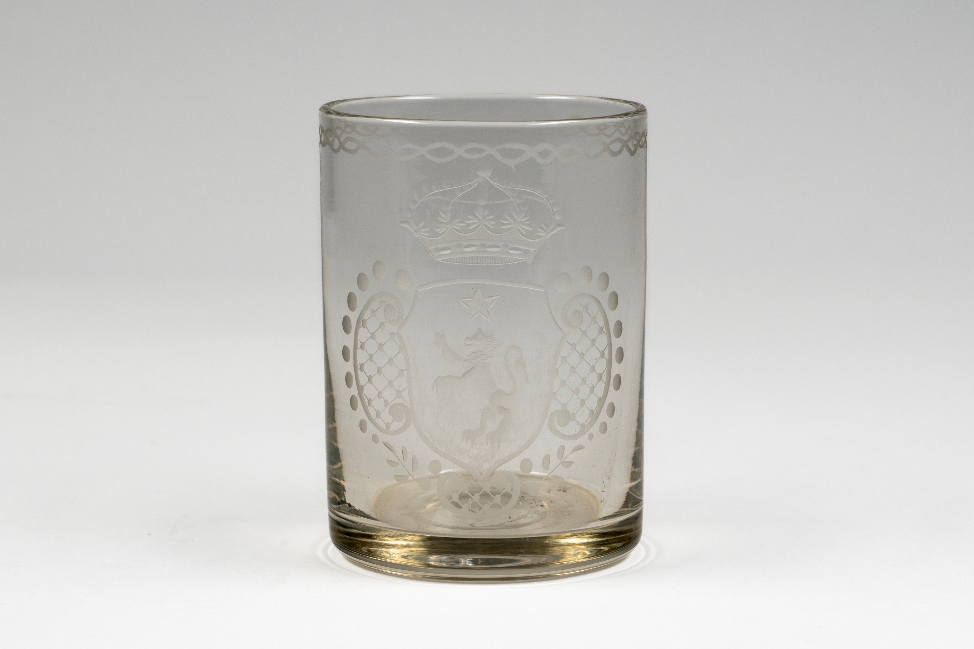 Undici bicchieri in vetro inciso con differenti stemmi araldici