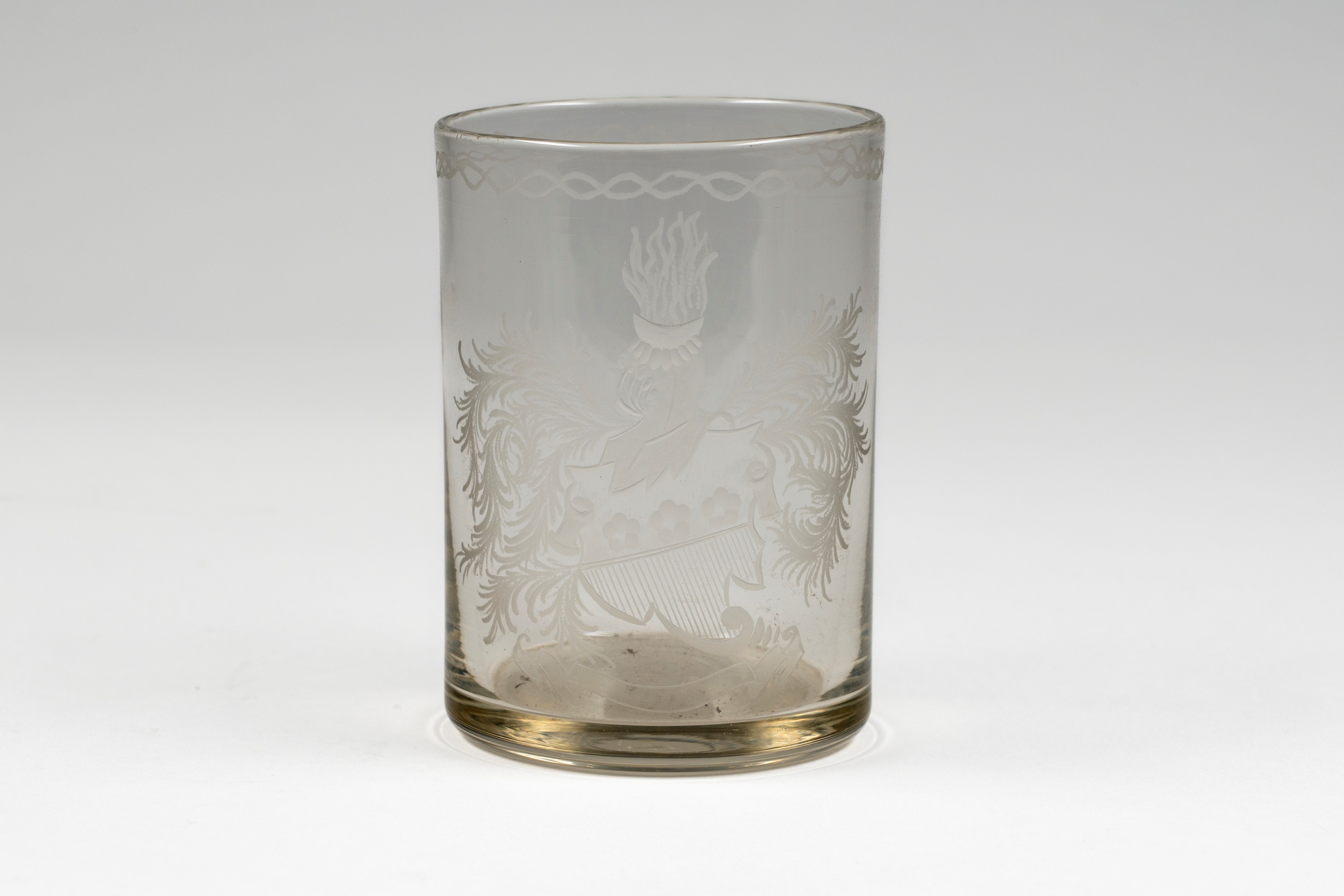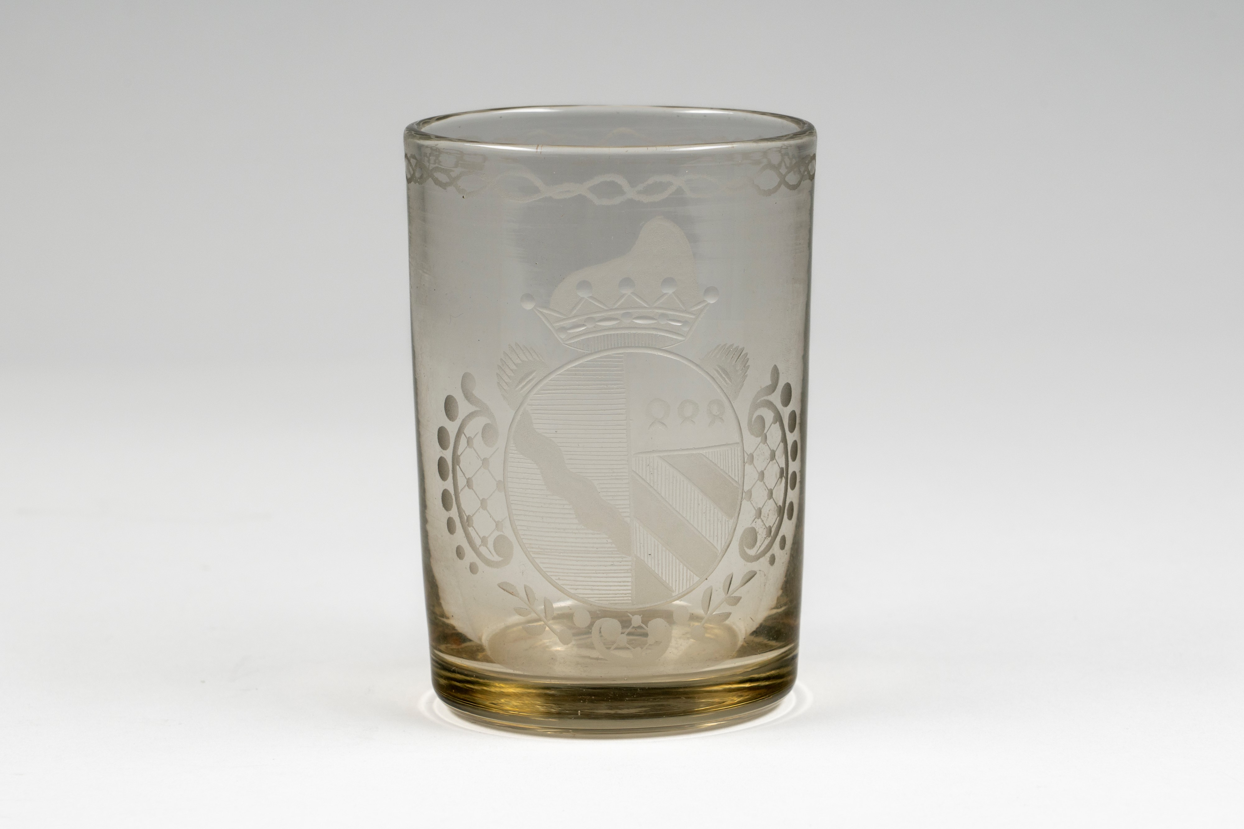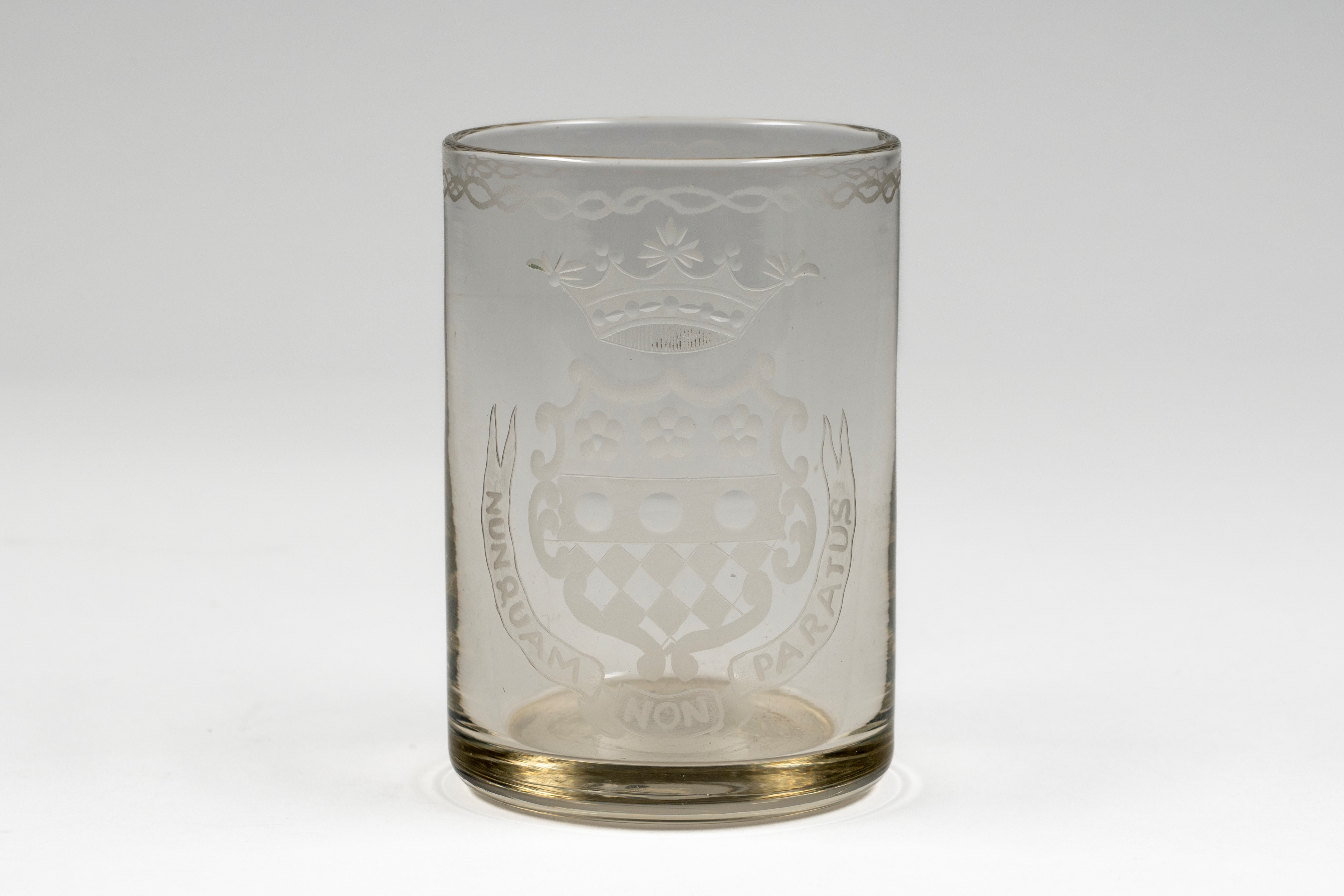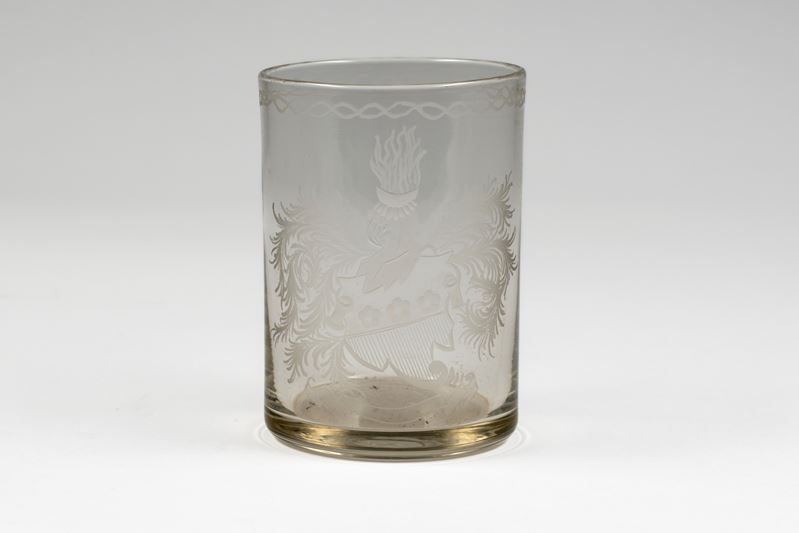 Undici bicchieri in vetro inciso con differenti stemmi araldici