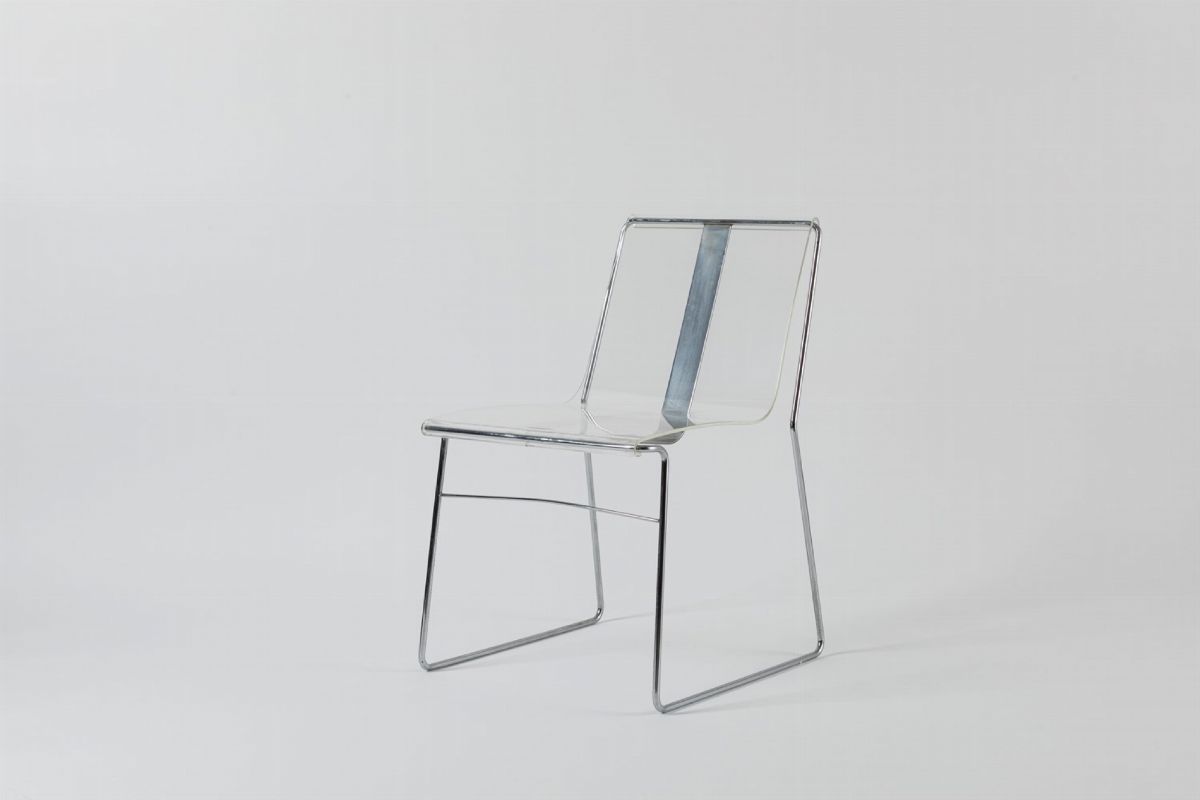 in plexiglass e struttura in metallo cromato e nichelato.
