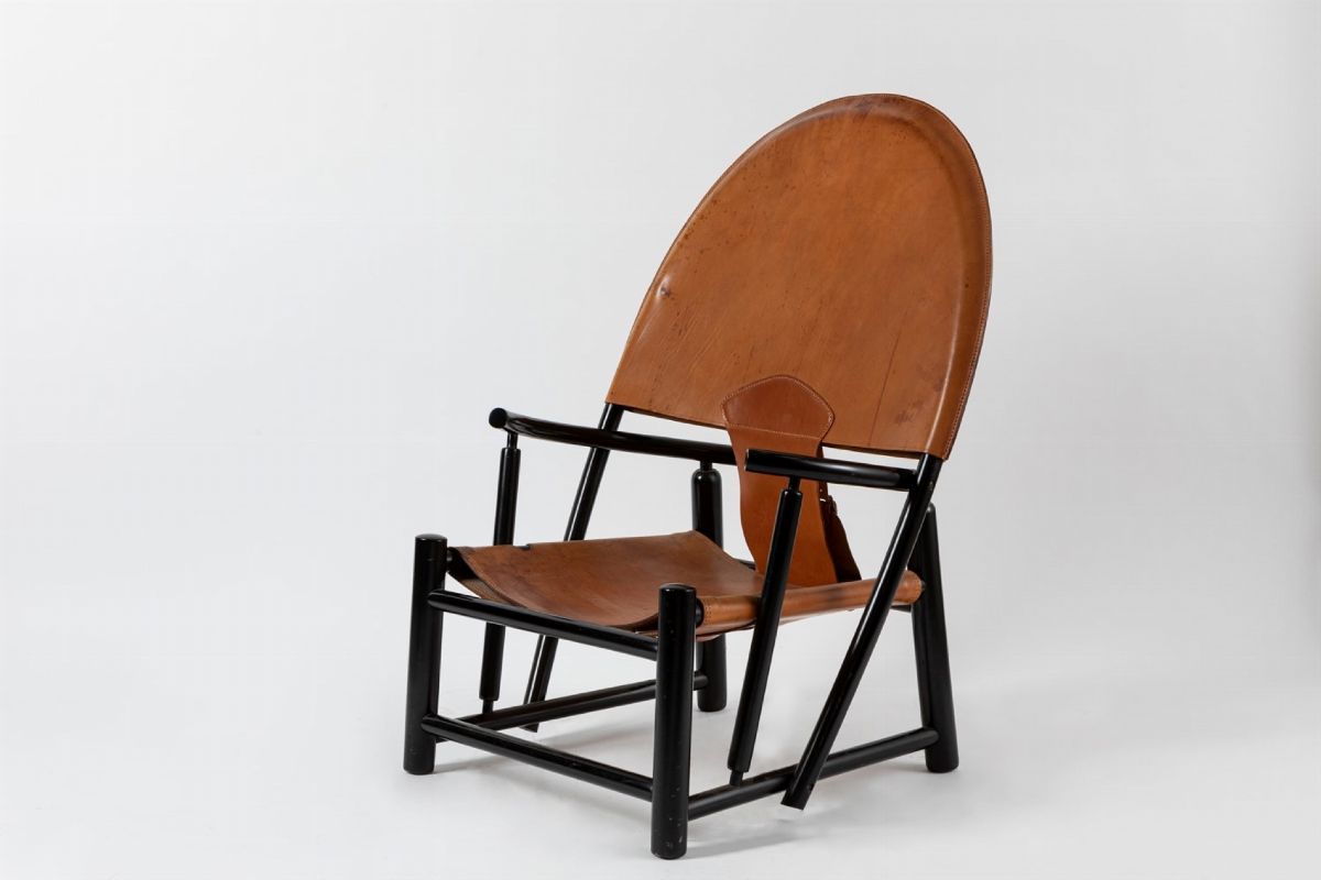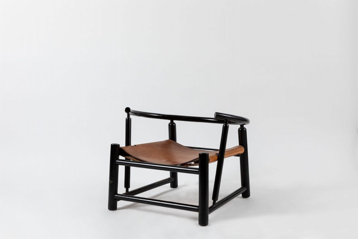 in lacca, pelle e legno. Una con e una senza schienale.