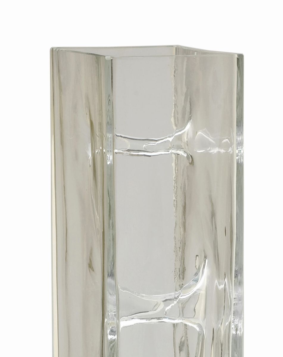 in vetro trasparente con rientranze simmetriche.