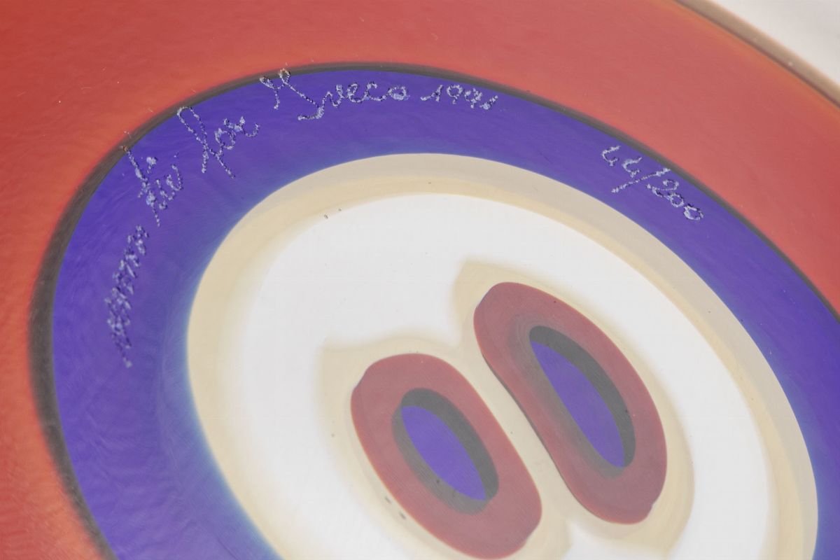 in vetro soffiato ad incalmo con murrine nel centro. Etichetta, data e firma incisa Edizione limitata a 250 esemplari prodotta da Venini per Iveco cm h 4 x diam 37