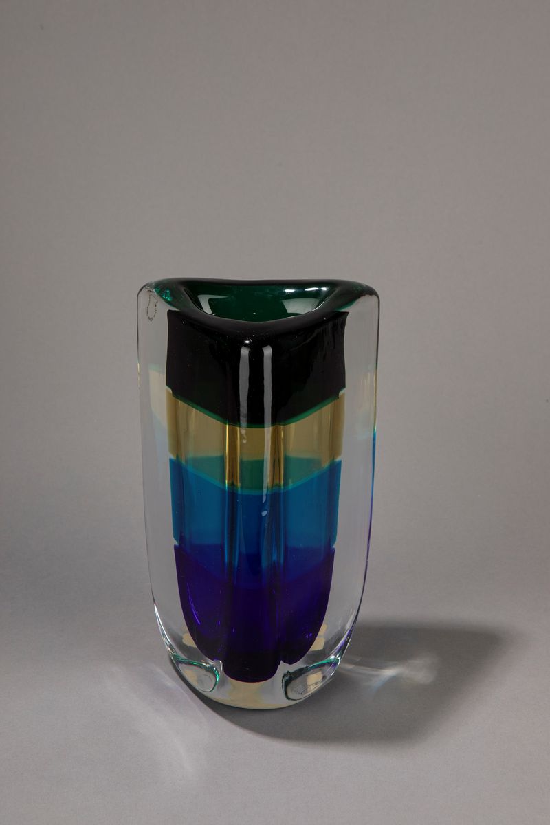 In vetro sommerso colorato. Firmato e datato 1991/60 con etichetta originale