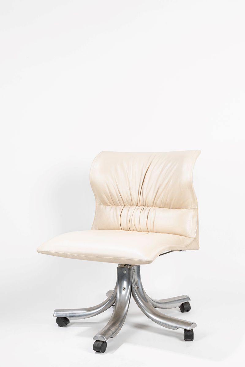 modello Vela con e senza braccioli. Pelle e struttura in metallo. Produzione Saporiti.