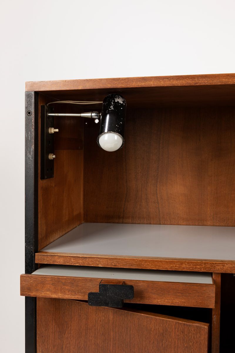 modello Positano. Legno, metallo verniciato e lampade da lettura. Produzione MIM.