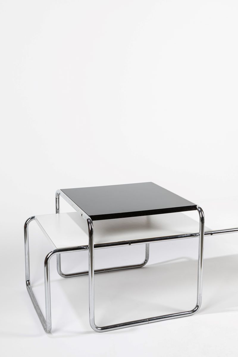 modello Laccio in acciaio tubolare cromato, laminato. Produzione Gavina. Etichetta originale.
