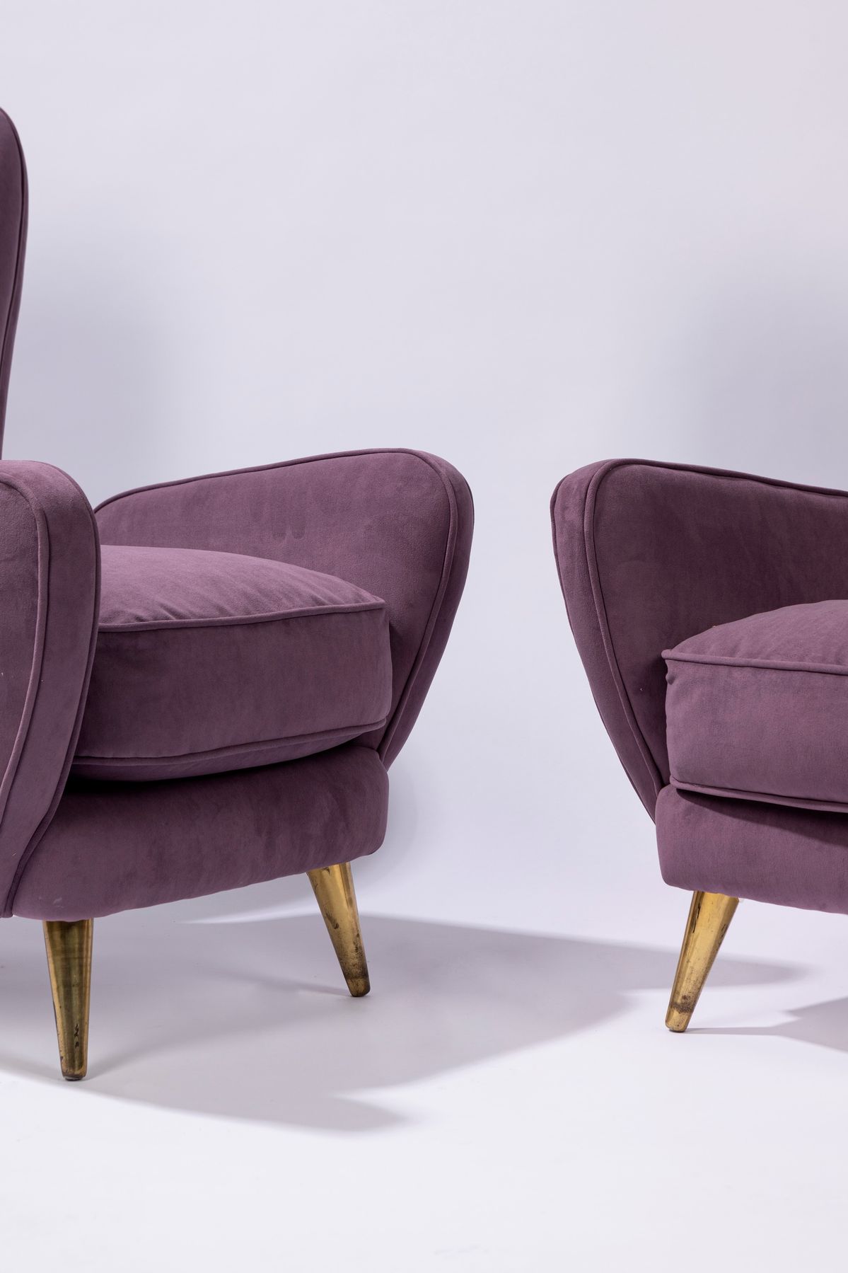 piedi in ottone e rivestimento in velluto viola.