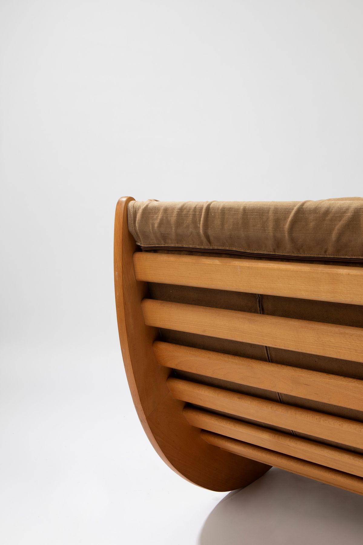 Dondolo in legno d'acero curvato, imbottitura rivestita con tessuto Missoni.