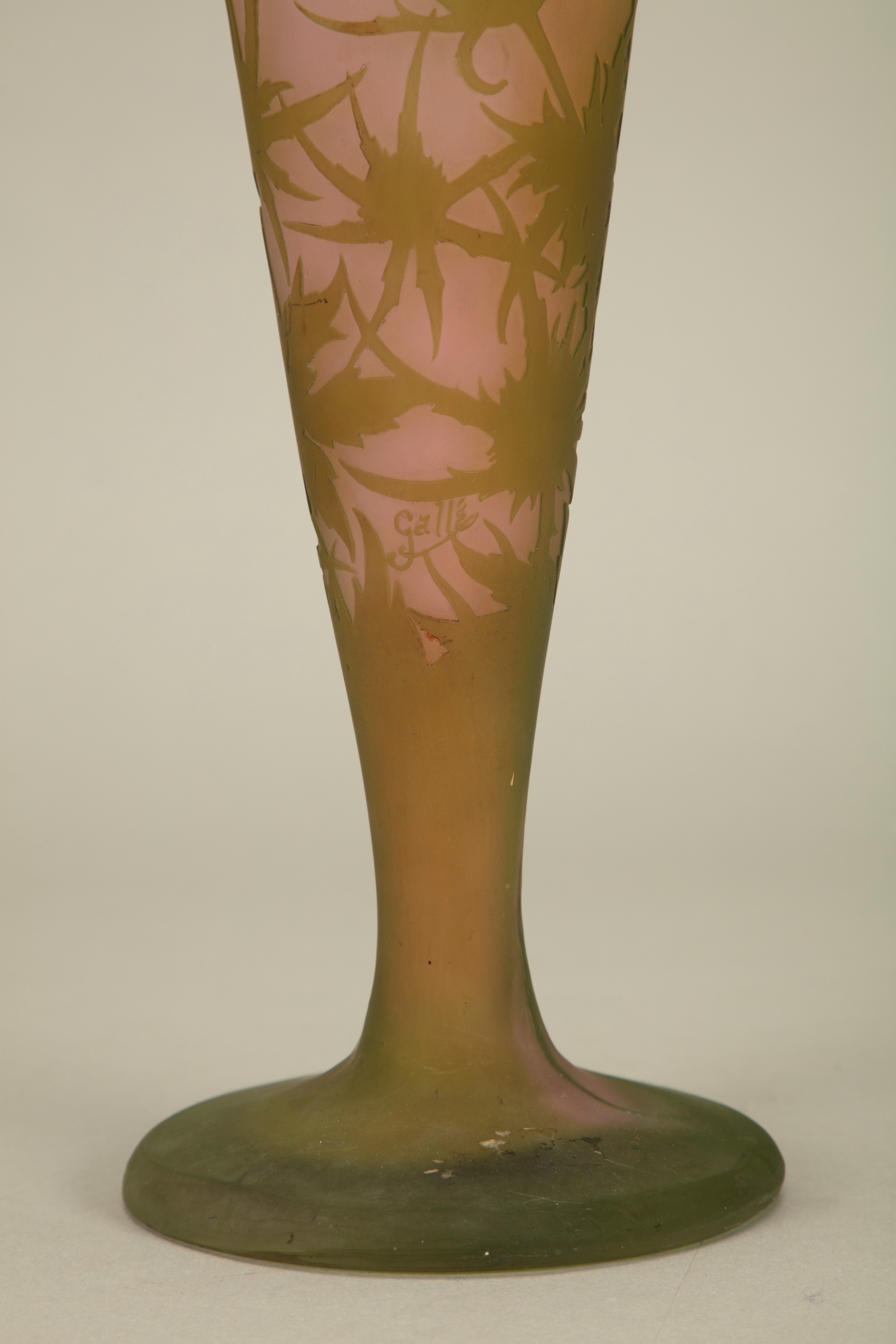 in vetro a strati di colore, lavorazione a cammeo, decorazione con cardi.
