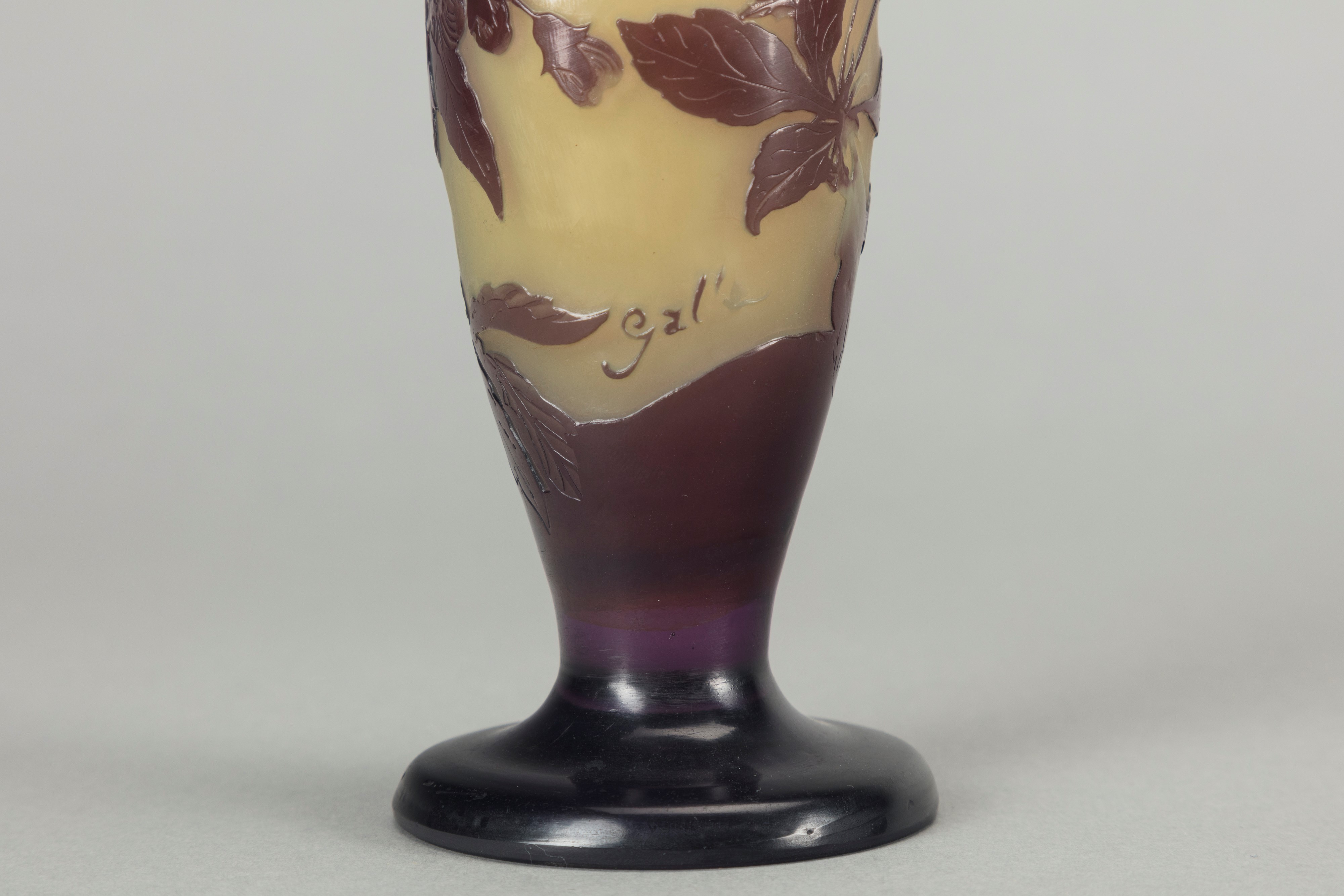 in vetro a strati di colore, lavorazione a cammeo, decorazione con fiori e foglie.