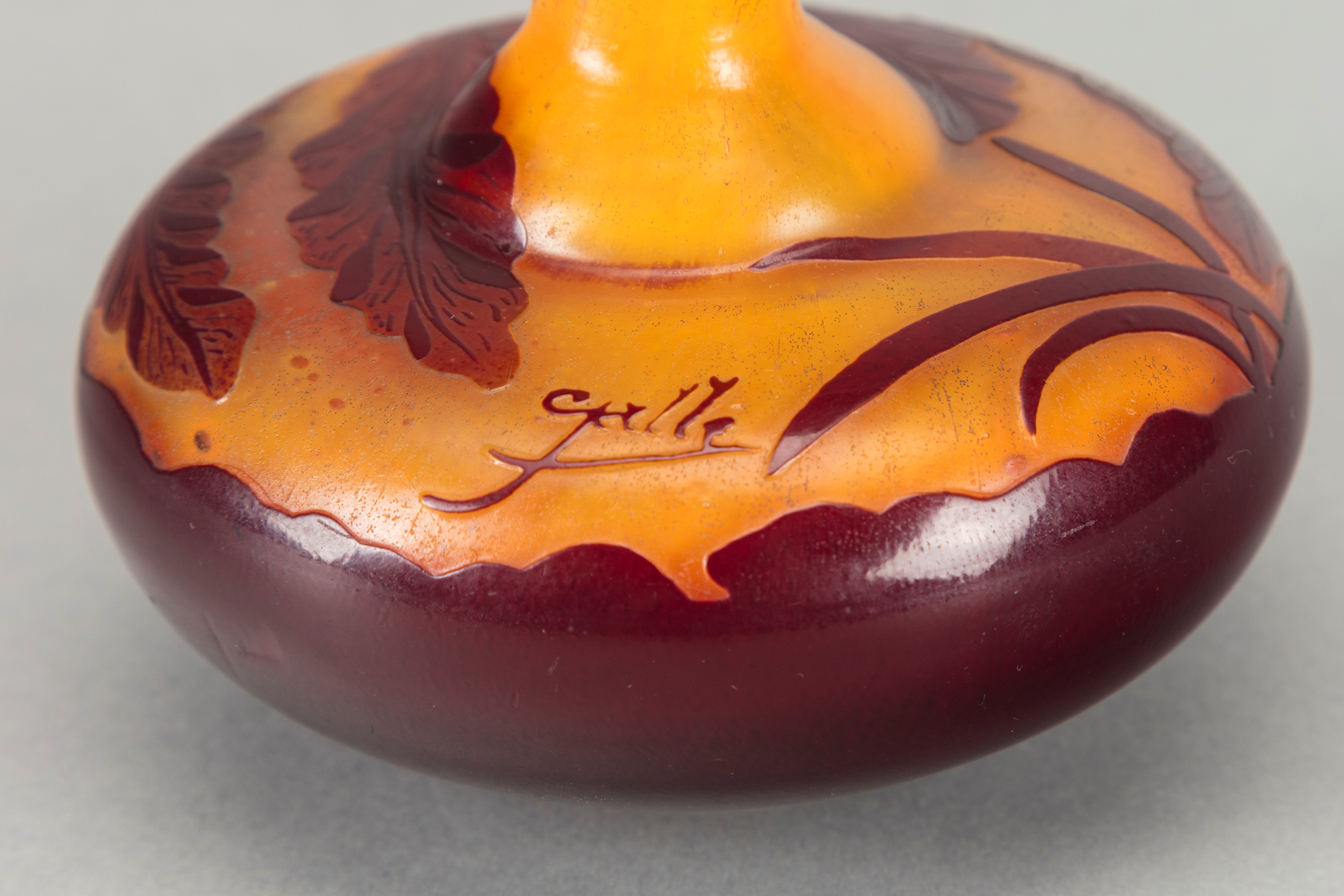 in vetro a strati di colore, lavorazione a cammeo, con decorazione floreale.