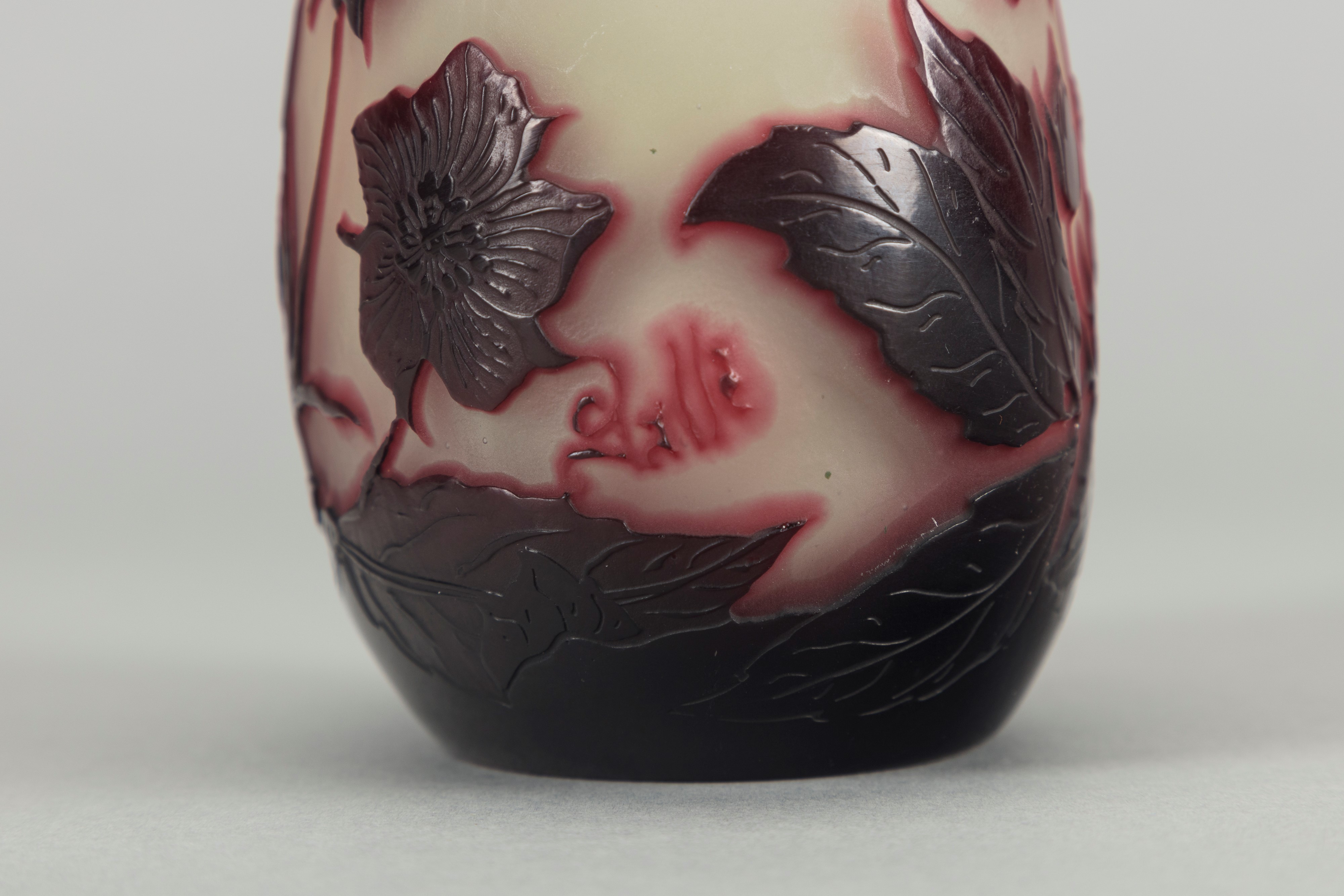 in vetro a strati di colore, lavorazione a cammeo, decorazione con anemoni.