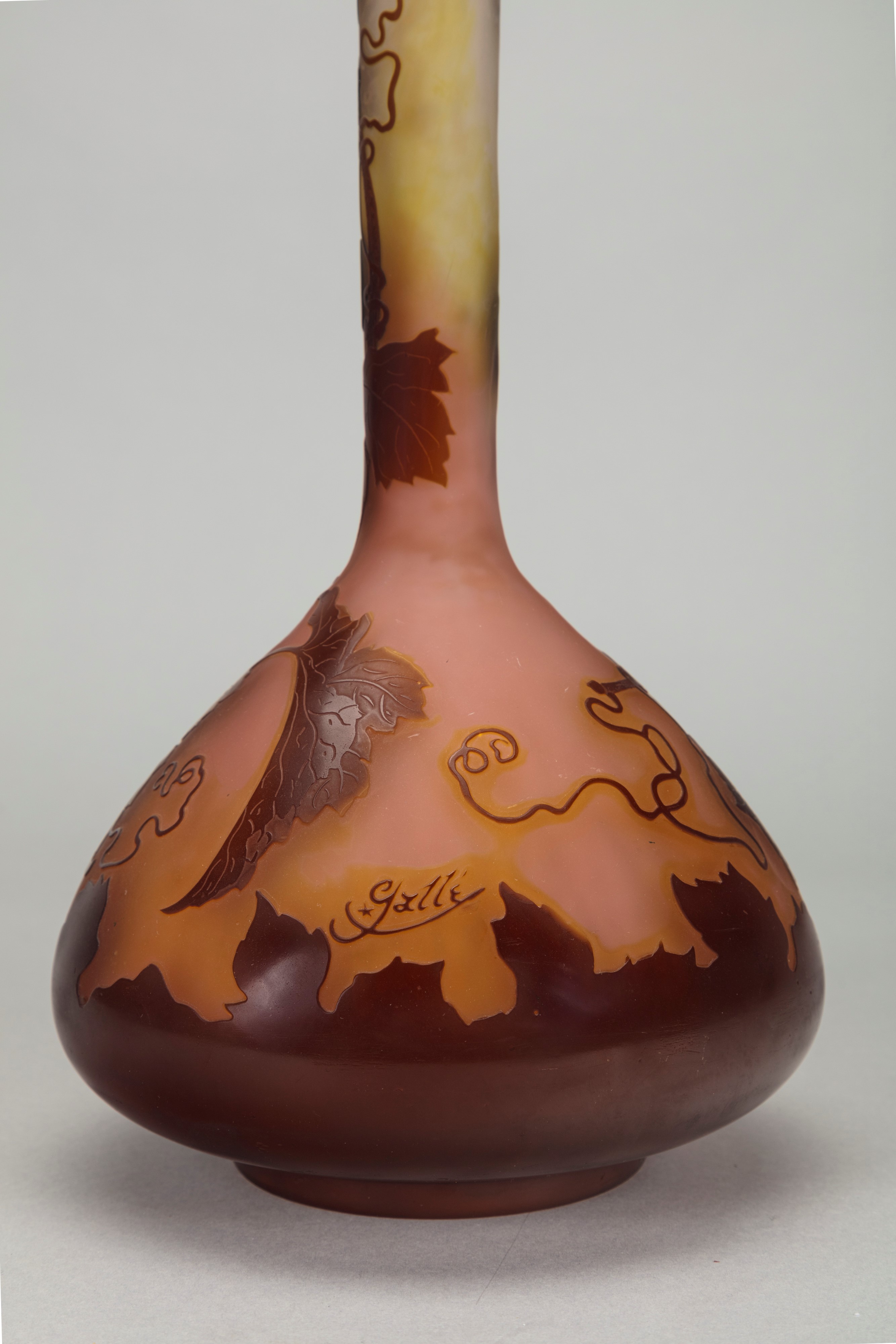 in vetro a strati di colore, lavorazione a cammeo, decorazione con tralci di vite e uva.