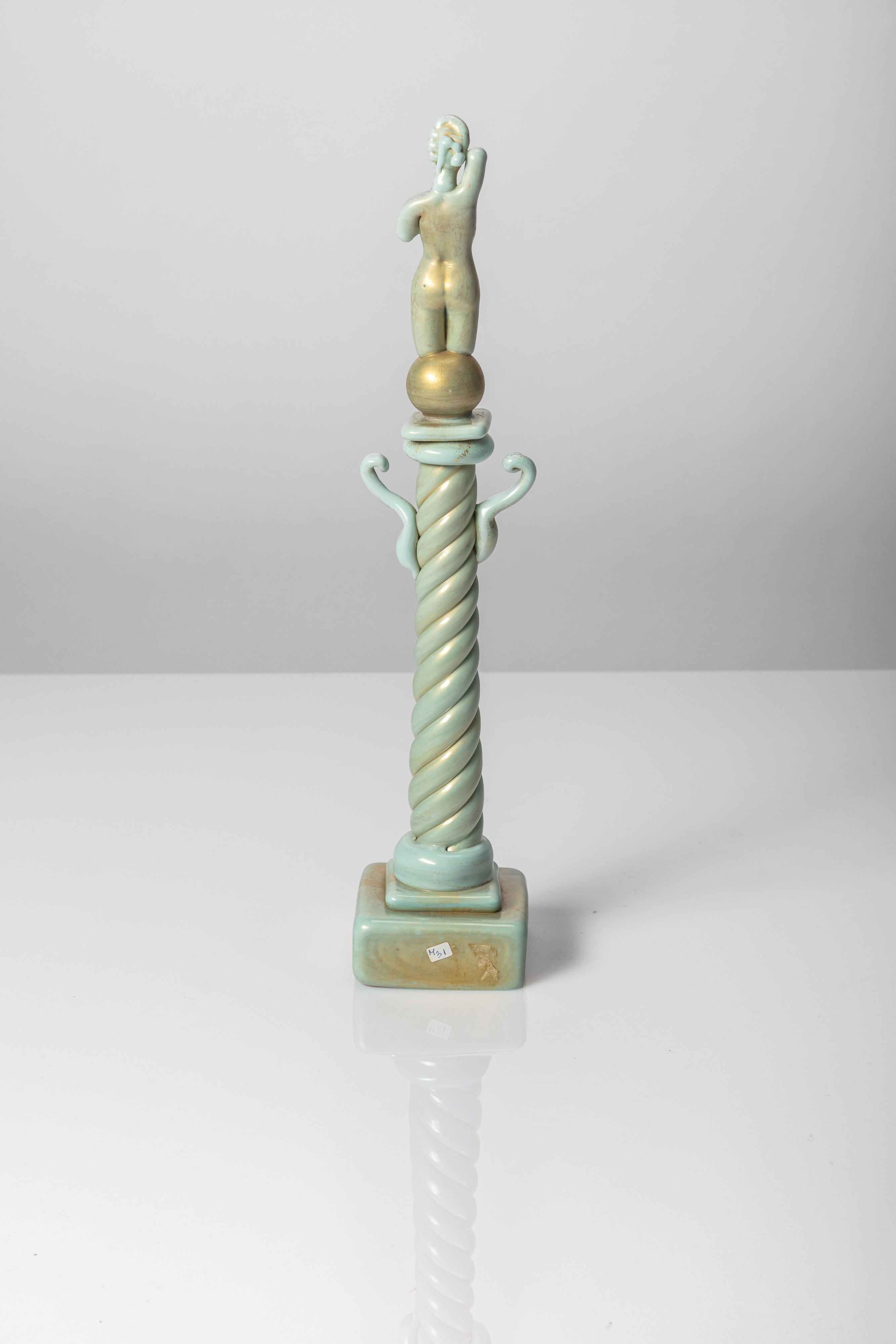 Rara figura su colonna a torciglione con decoro a foglia d'oro