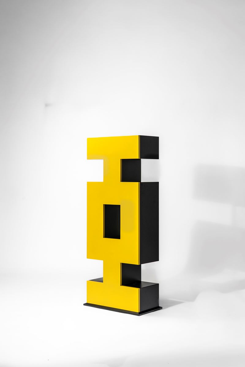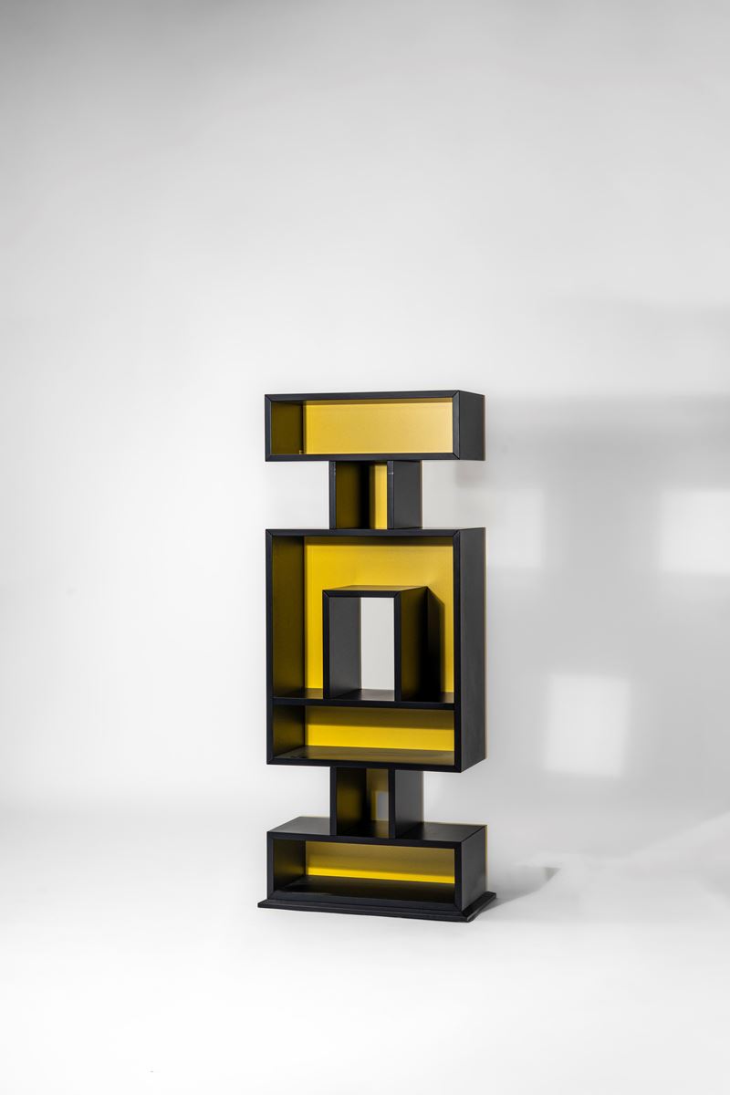 Libreria bifacciale con struttura geometrica della collezione 'Ollo'