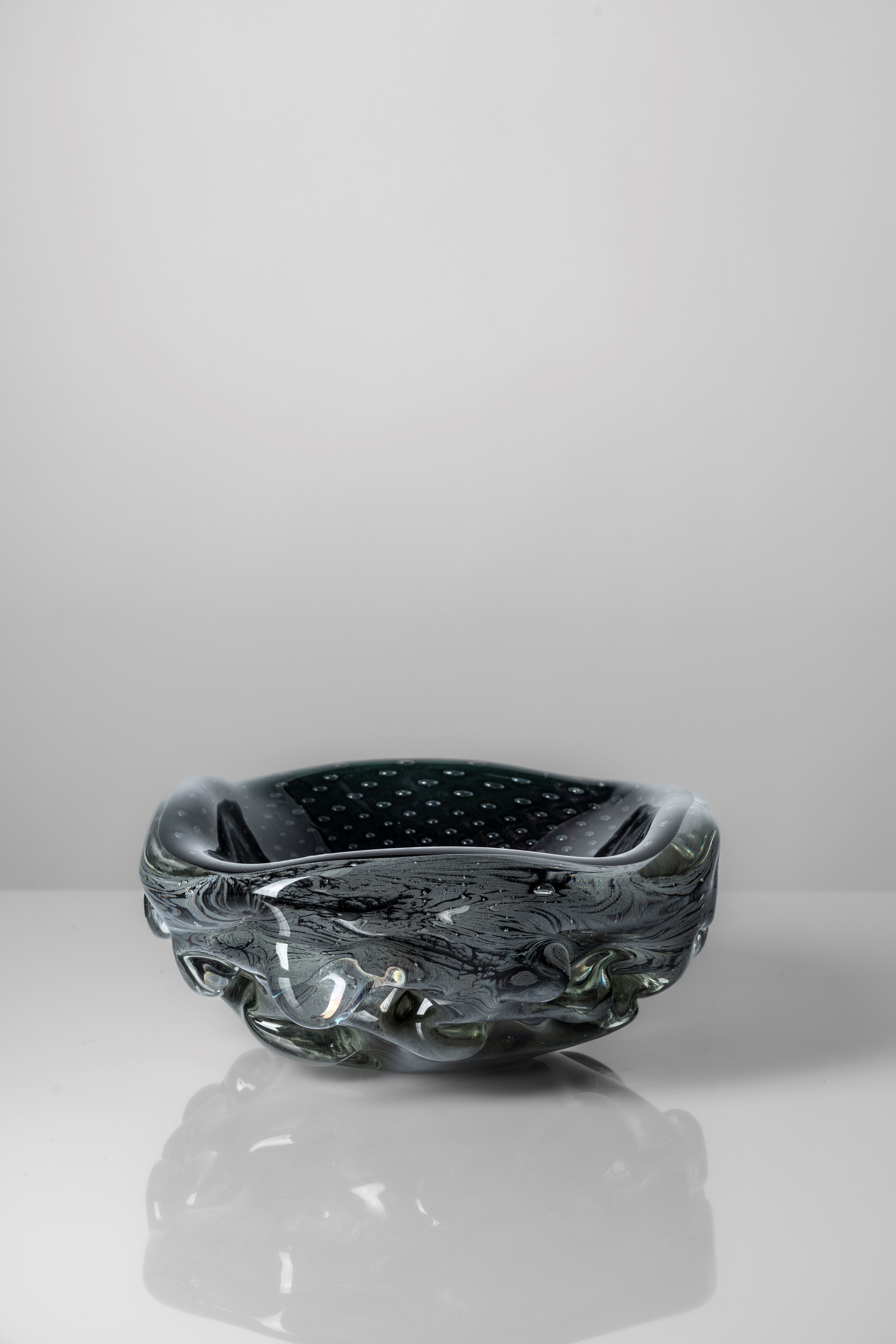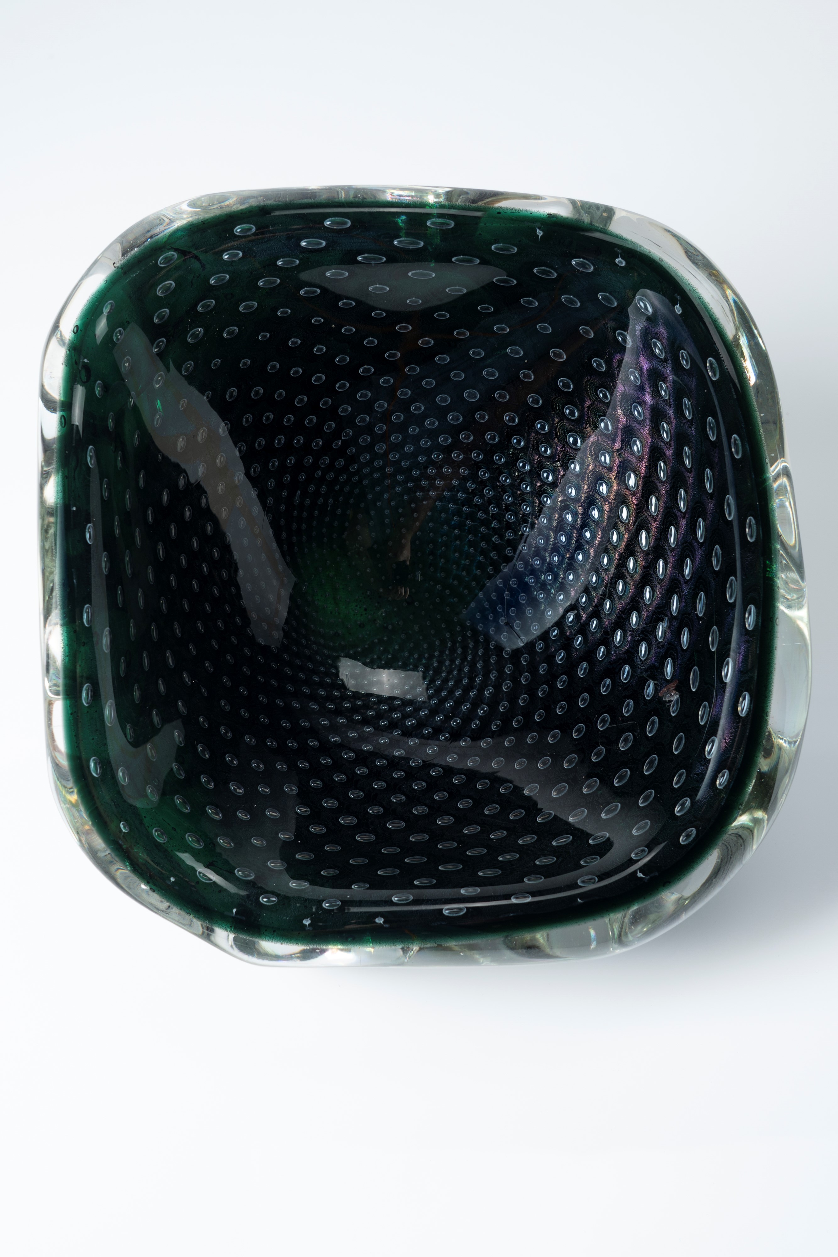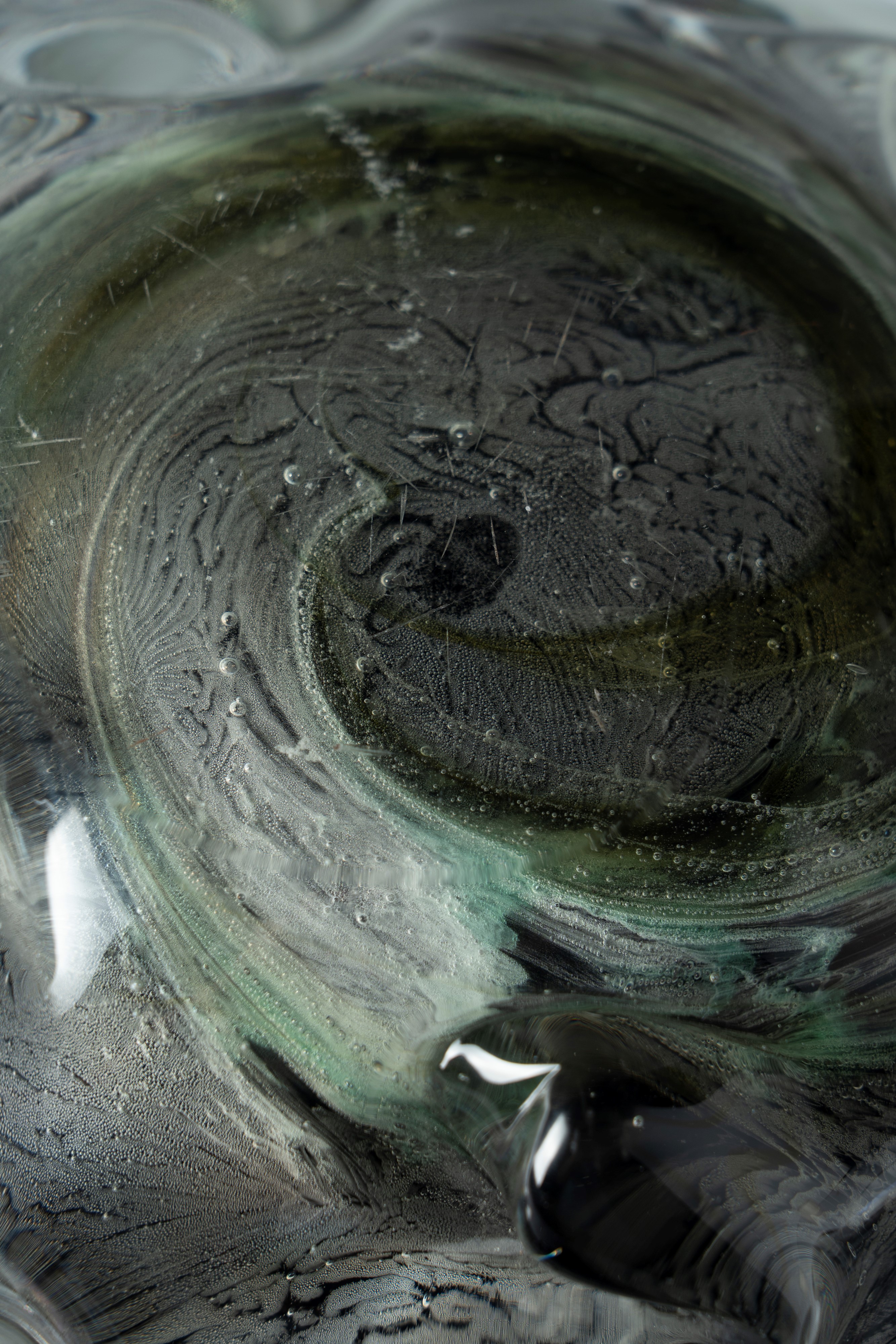 Coppa bullicante in vetro massiccio sommerso con strato interno verde ed effetto 'fumato'