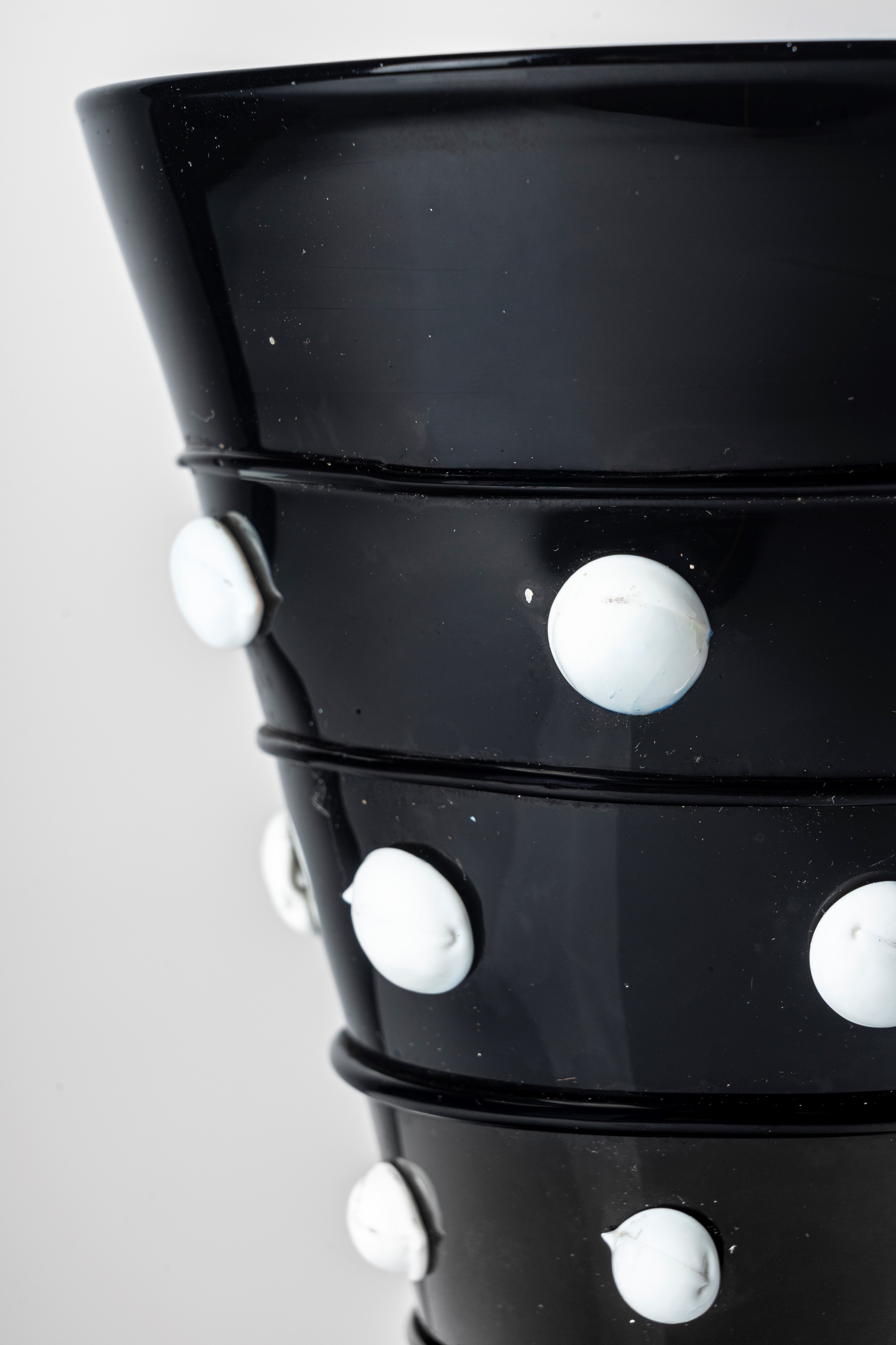 Vaso in vetro soffiato ametista scura con decoro applicato in pasta di vetro, simile al modello no. 4001-A