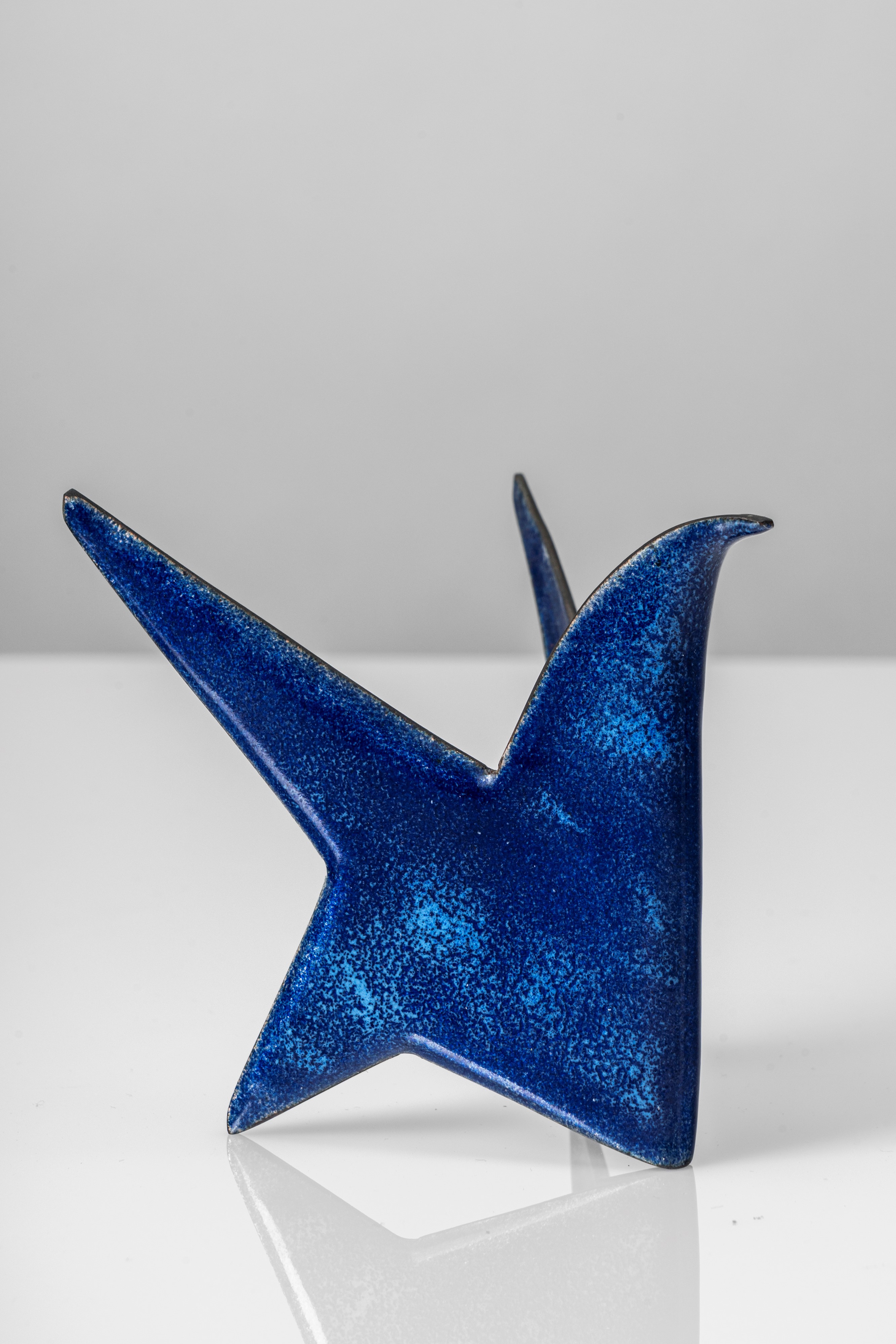 Coppia di vassoi a smalti policromi su rame modello no. 2132, 1964