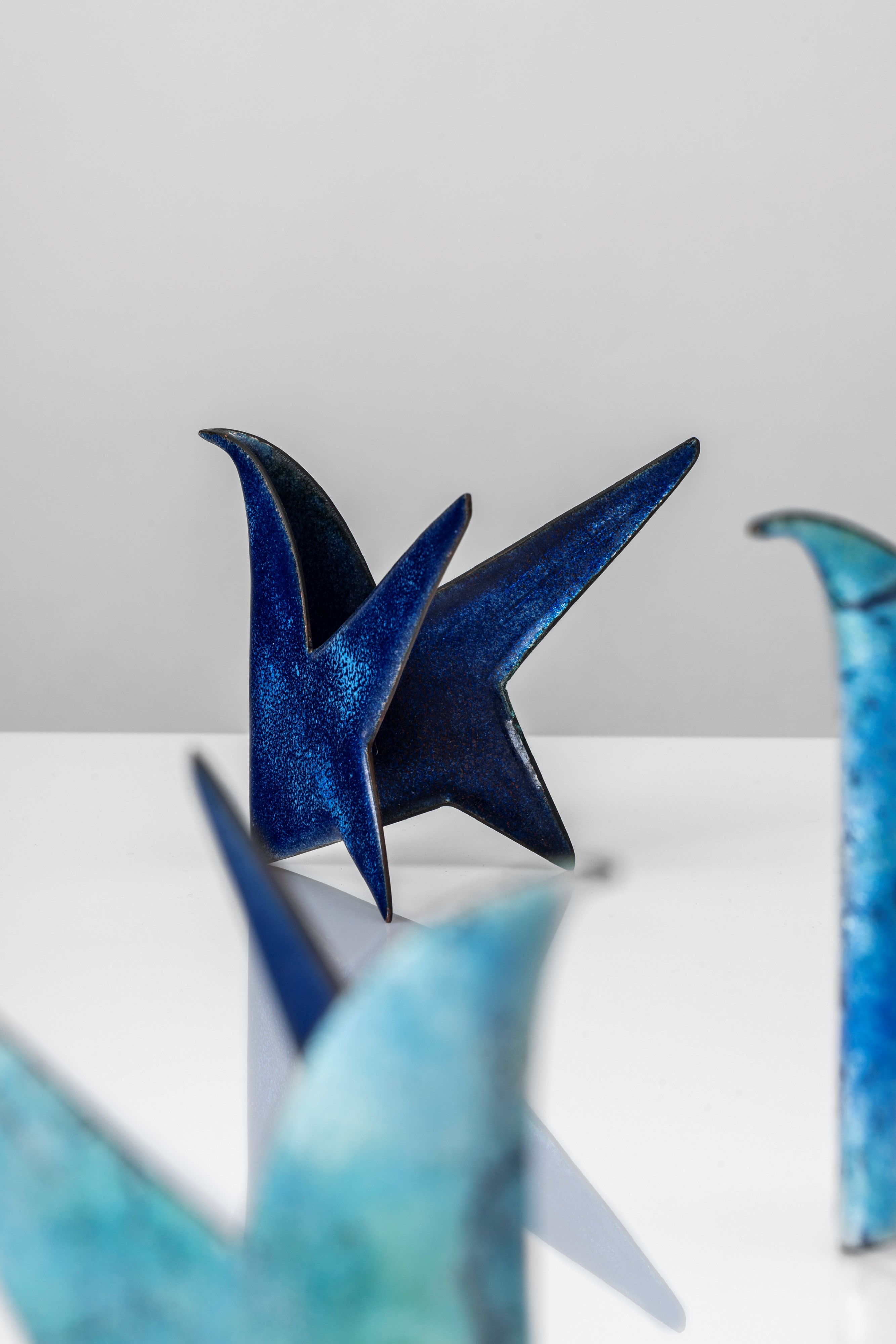 Set di tre Uccellini a smalti policromi su rame modello no. 1016