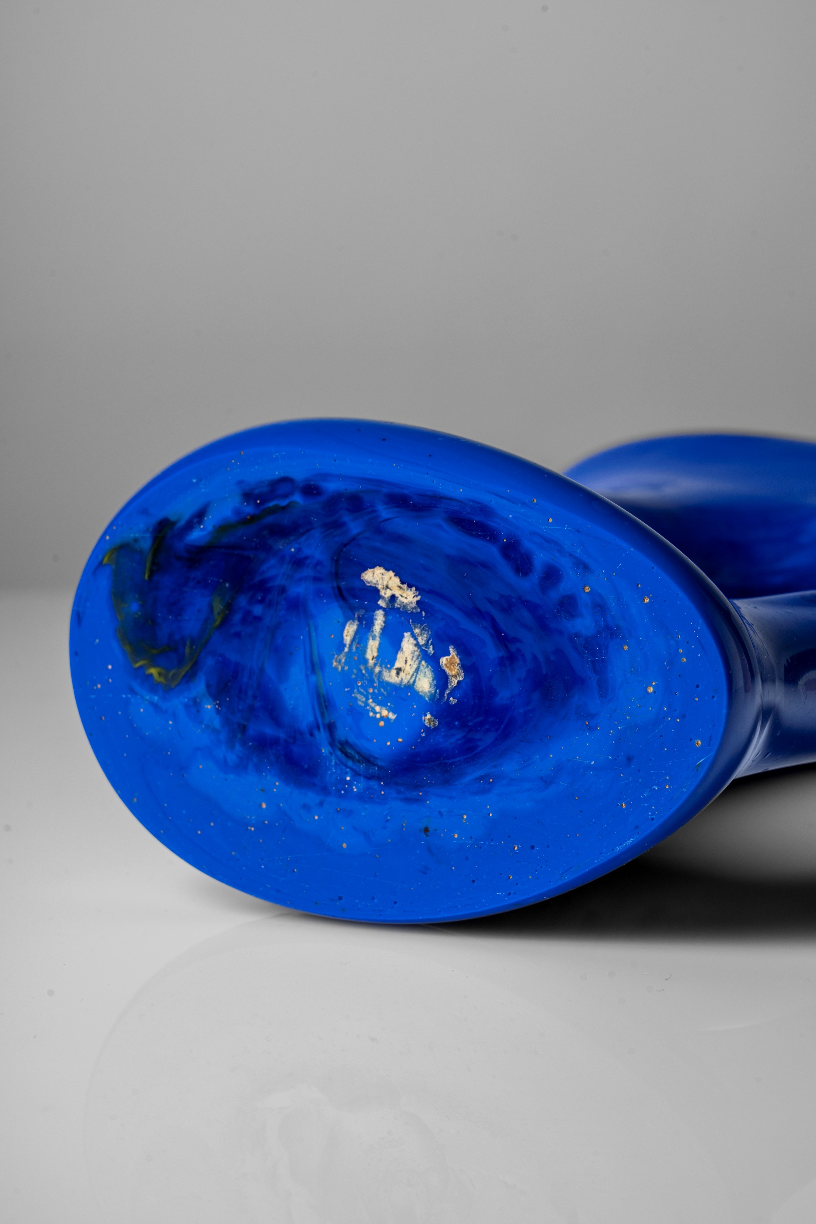 Coppia di rari vasi in pasta di vetro color cipria e blu cobalto