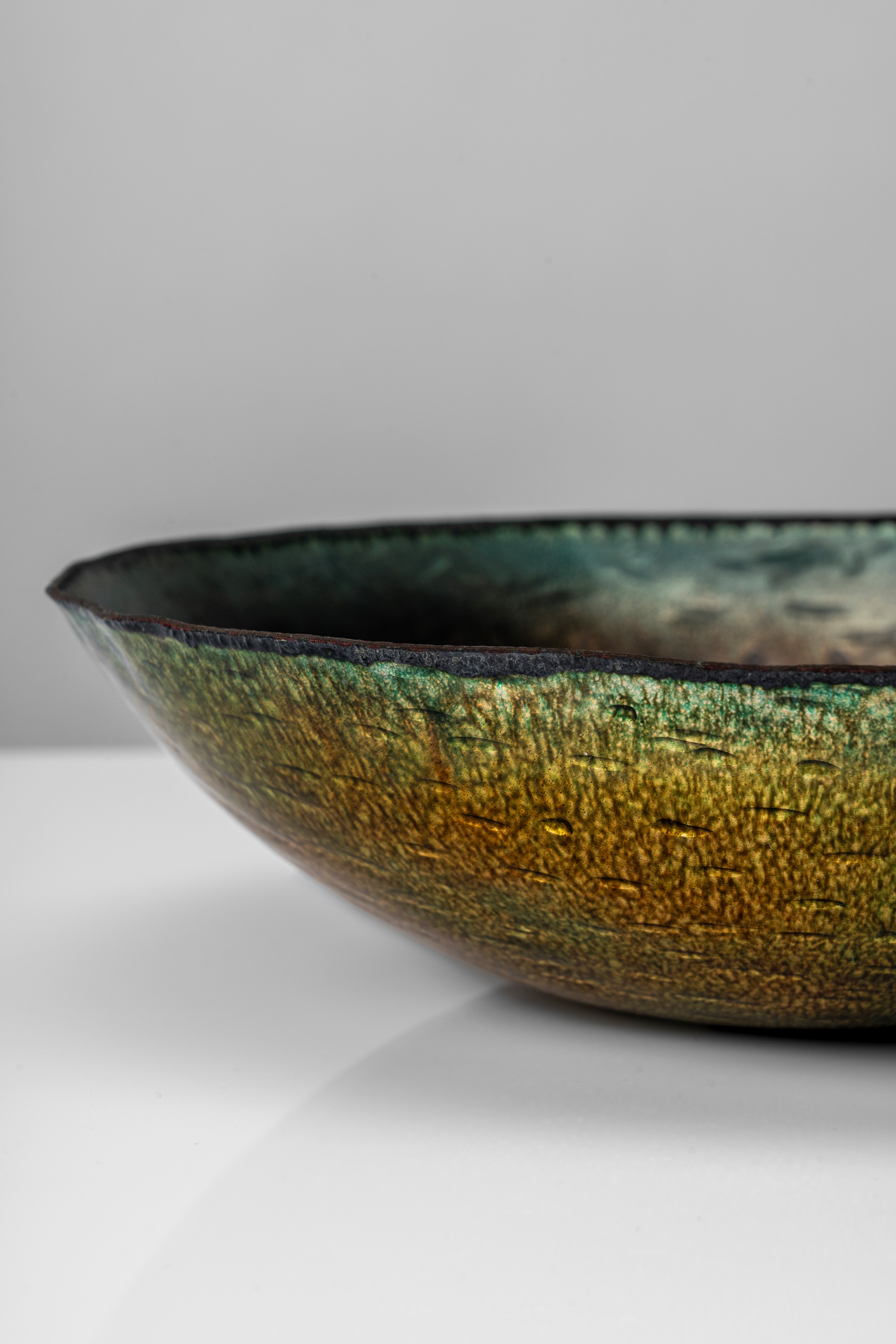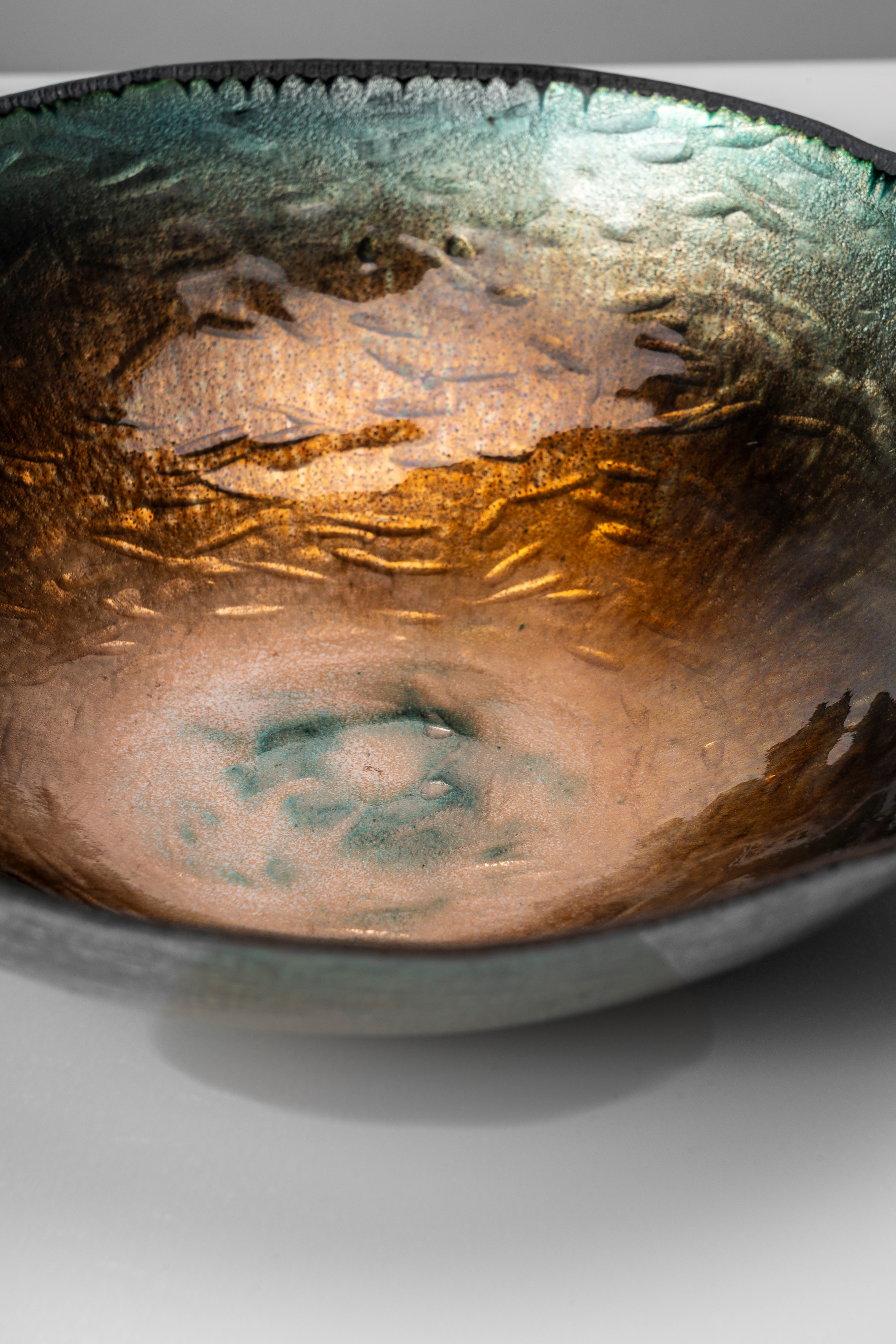 Coppa a smalti policromi su rame